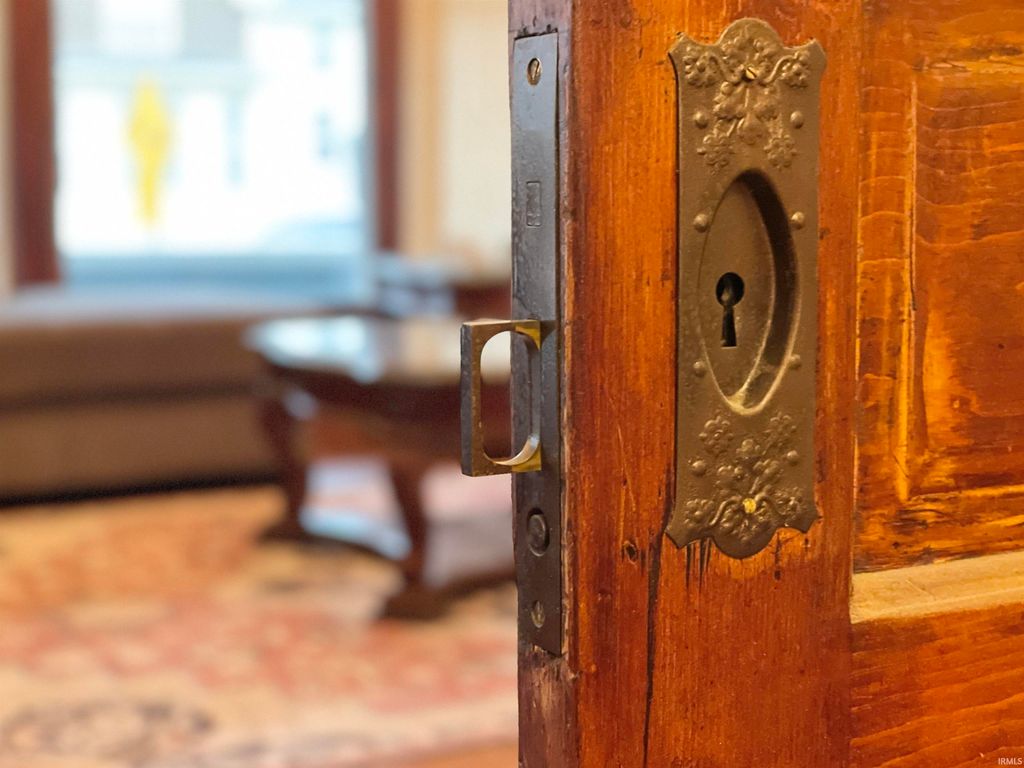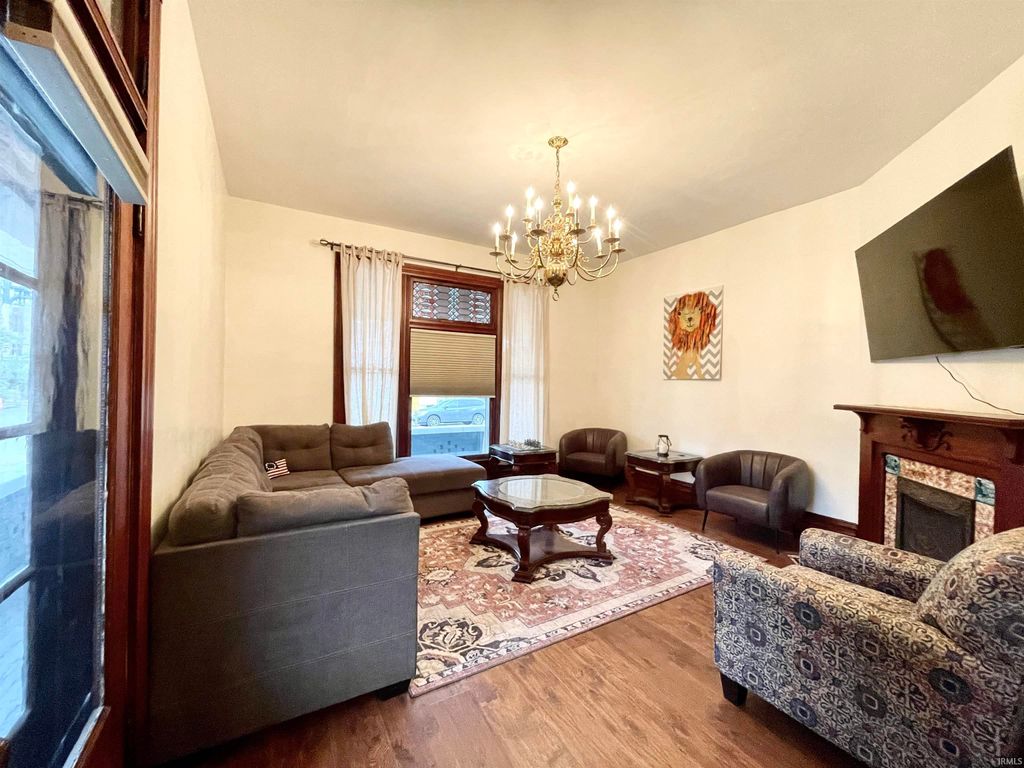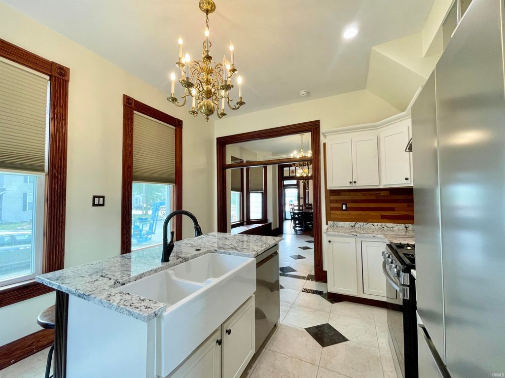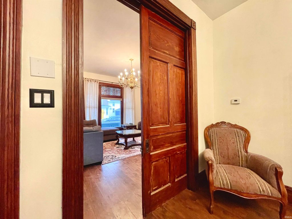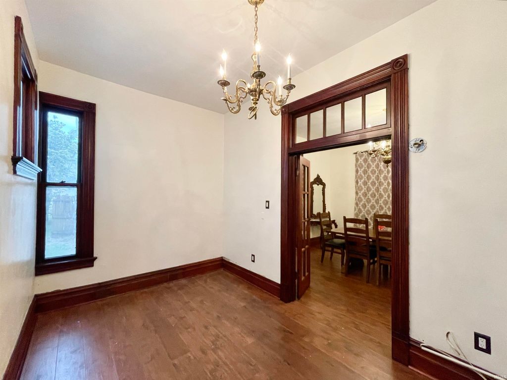 This late Victorian home blends historic charm with modern daily life, highlighted by its inviting craftsman-era corner porch on a prominent corner lot close to all that West Franklin Street has to offer. Step inside through the covered porch, into a formal dining room, with an original 5' single pocket door separating a spacious front parlor featuring a corner fireplace and stunning stained-glass transom window. French doors open to a flexible room that easily serves as a home office, guest bedroom, or fourth bedroom. Just beyond the dining room, the thoughtful renovation creates a butler's pantry space with a cozy bay-window storage seat that's worthy of congregation, entertaining, or showcasing your bourbon collection to only yourself while you read your latest book acquisition in beautiful solace. Abundant new cabinetry blends with original woodwork, with a beautifully tiled full bath and guest powder room behind the wall. The kitchen is a showpiece, with quartz counters, stainless appliances, contemporary hood, large eat-in island, custom wood backsplash, and original built-ins. Upstairs, you'll find three bedrooms, plus a versatile landing with laundry and sitting area ideal for homework, gaming, home office, or that old fashioned television. Located just one block from Gerst Haus and the Westside Library Park, and right in the heart of the Fall Festival, you'll love the mix of history, style, and Westside neighborhood energy.