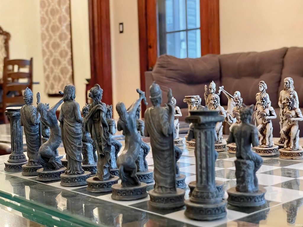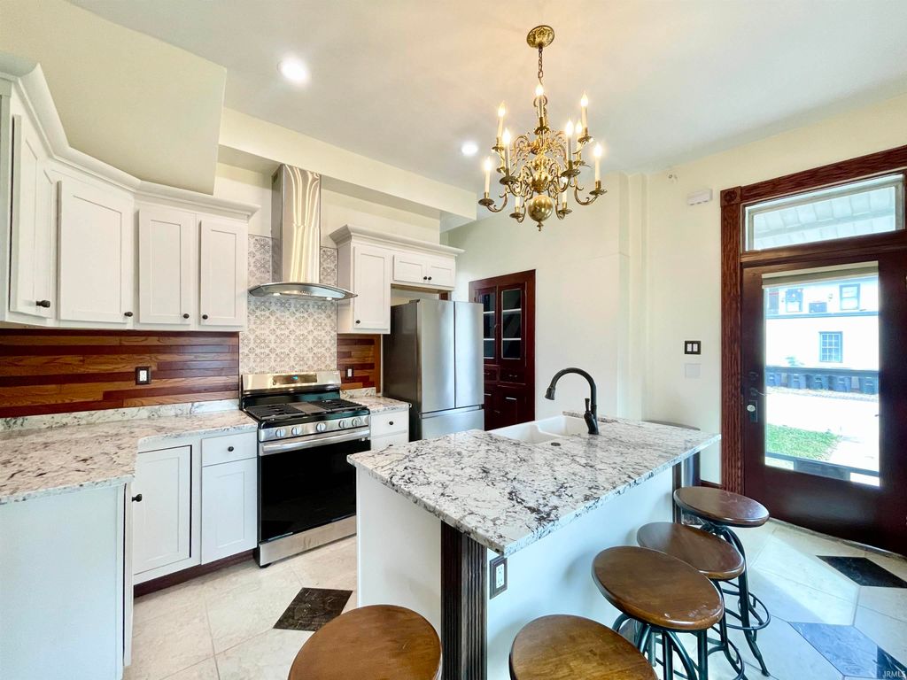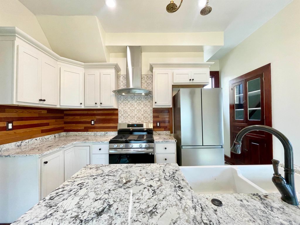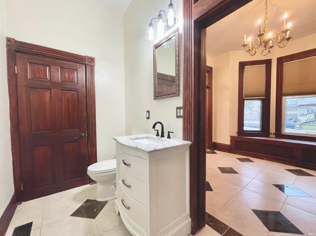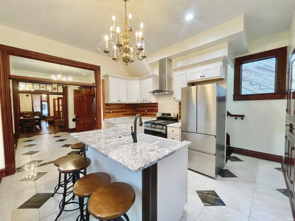 This late Victorian home blends historic charm with modern daily life, highlighted by its inviting craftsman-era corner porch on a prominent corner lot close to all that West Franklin Street has to offer. Step inside through the covered porch, into a formal dining room, with an original 5' single pocket door separating a spacious front parlor featuring a corner fireplace and stunning stained-glass transom window. French doors open to a flexible room that easily serves as a home office, guest bedroom, or fourth bedroom. Just beyond the dining room, the thoughtful renovation creates a butler's pantry space with a cozy bay-window storage seat that's worthy of congregation, entertaining, or showcasing your bourbon collection to only yourself while you read your latest book acquisition in beautiful solace. Abundant new cabinetry blends with original woodwork, with a beautifully tiled full bath and guest powder room behind the wall. The kitchen is a showpiece, with quartz counters, stainless appliances, contemporary hood, large eat-in island, custom wood backsplash, and original built-ins. Upstairs, you'll find three bedrooms, plus a versatile landing with laundry and sitting area ideal for homework, gaming, home office, or that old fashioned television. Located just one block from Gerst Haus and the Westside Library Park, and right in the heart of the Fall Festival, you'll love the mix of history, style, and Westside neighborhood energy.
