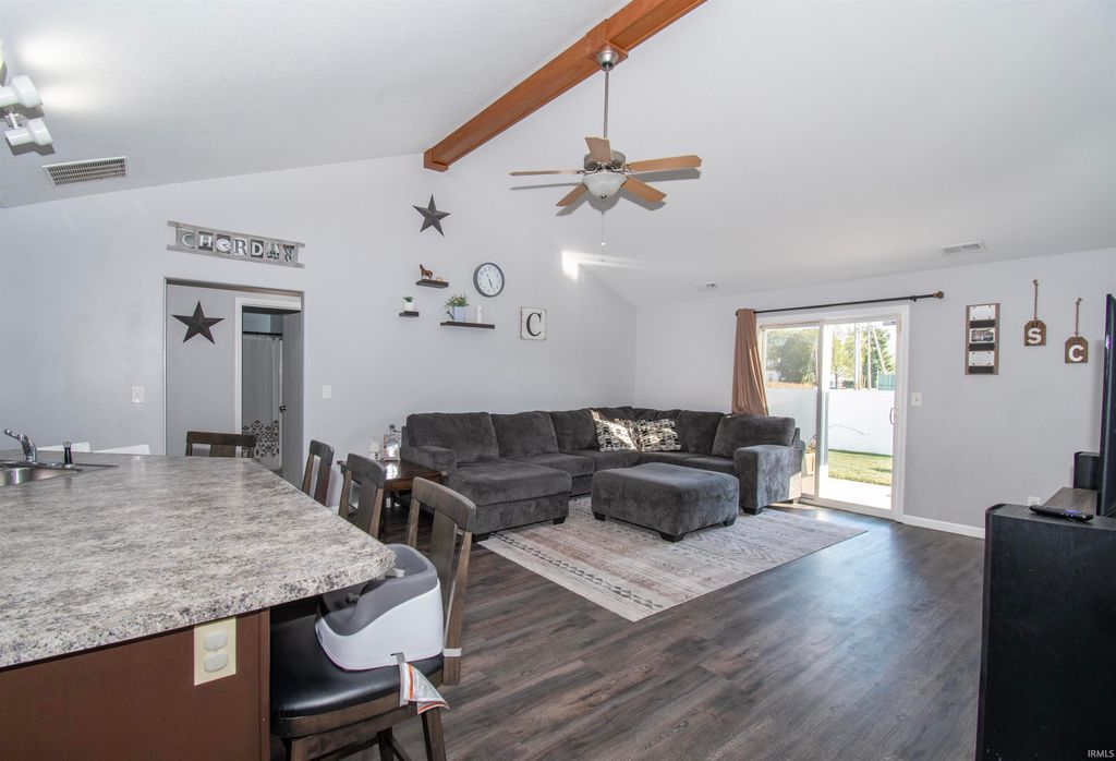 *Open House 11-9-25* Beautifully maintained 4-bedroom, 2-bath ranch in a quiet Avilla neighborhood! This move-in-ready home features an open floor plan with vaulted ceilings, a decorative beam, and great natural light. The kitchen offers espresso cabinetry, stainless steel appliances, tile backsplash, and a breakfast bar that opens to the living room, perfect for entertaining. The spacious primary suite includes luxury vinyl plank flooring and a large walk-in closet. Outside, enjoy a new concrete patio, fire pit, and newer vinyl privacy fence for outdoor relaxation. Recent updates include a newer water softener, a newer water heater, and a 2-car attached garage. Conveniently located near parks, schools, and downtown Avilla, this home combines modern updates with small-town charm!
