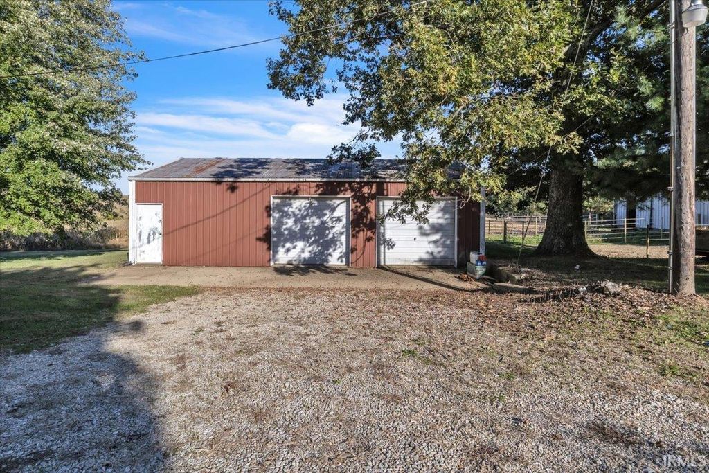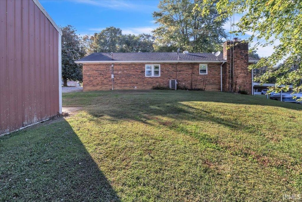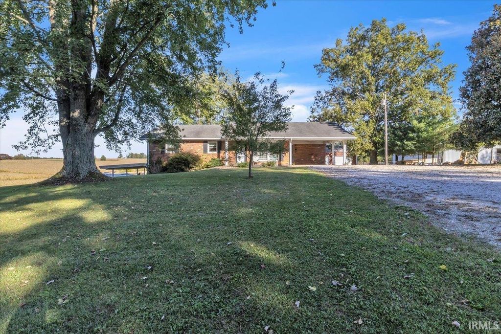 Enjoy peaceful rural living with this brick 3 bed, 2 bath, almost 2400 square feet home with walk out basement, pole barn and over 7 acres, some of which is currently leased to a farmer. The main level of the house has 3 bedrooms with a kitchen with dining area, living room, full bath, and tons of storage. The walk out basement offers another full bathroom, fireplace, storage, more living room and rec space, and has a rear laundry and storage room. This spread has plenty of parking with two driveways and a large carport attached to the home. The 24'x40' pole barn has two bays (one with an electric opener), workbenches, electric, concrete floors, and a stub out for connecting your own wood burning fireplace. Roof 15 yrs; Water heater 11 years; replacement windows; owner has always used monthly 'rid x type' septic treatment and never had an issue with the system.