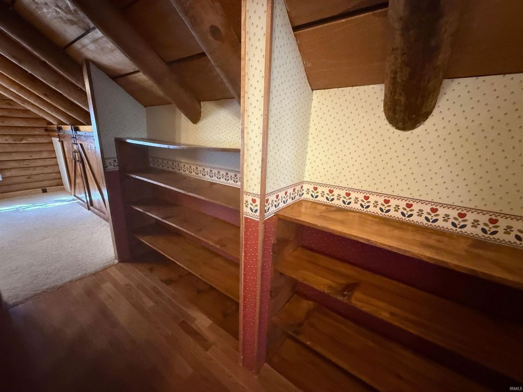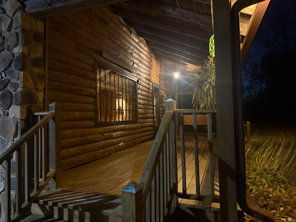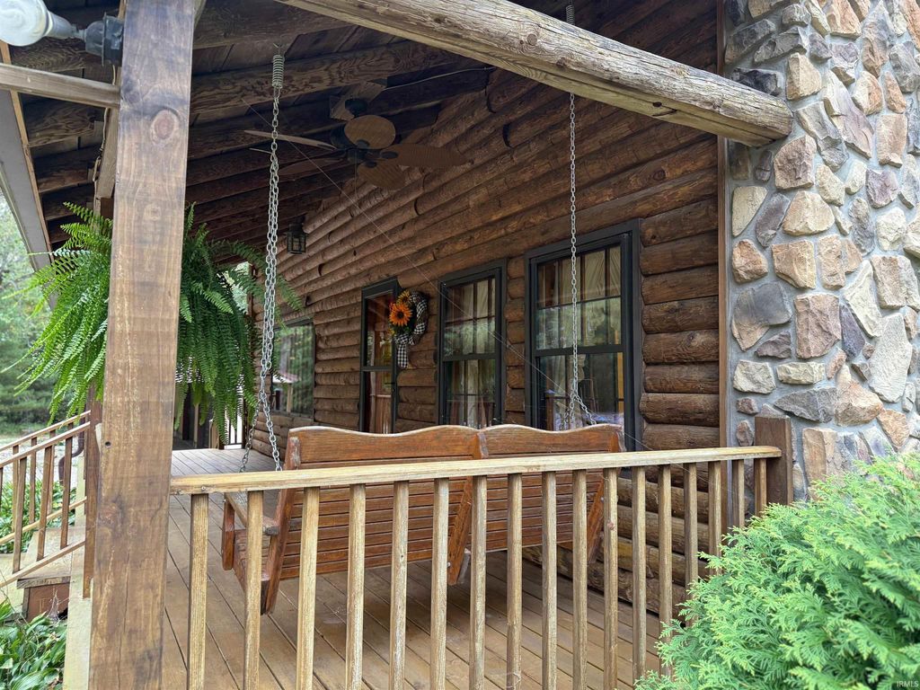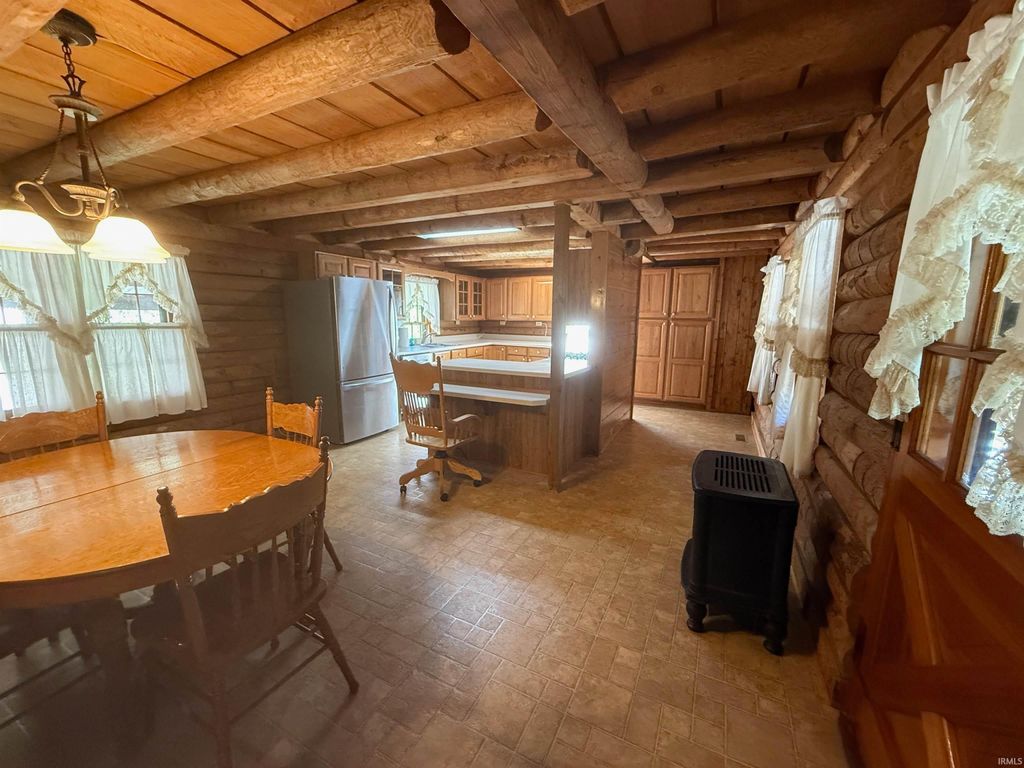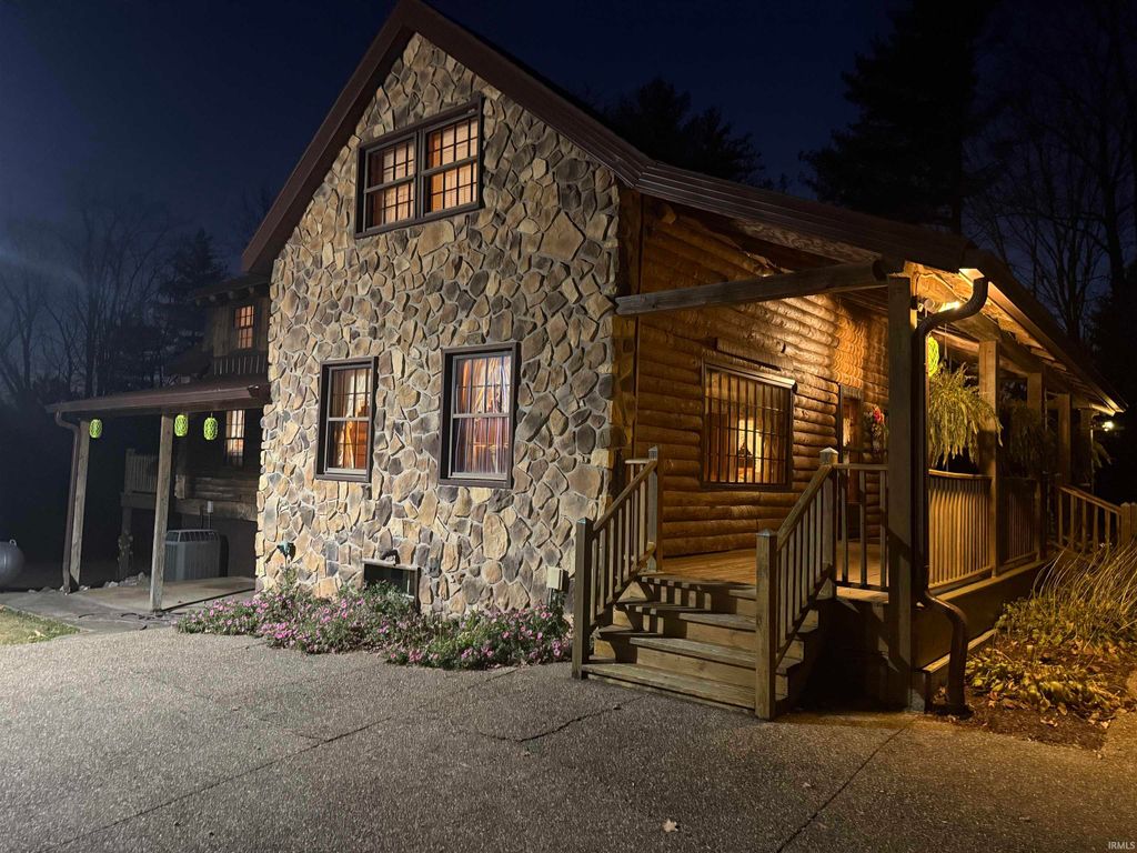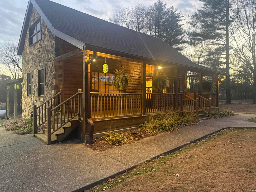 Perfect combination of log and stone home, with a large pole barn, pond on 7 acres in the country. Francisco address, near Wheeling. 20 minutes from Toyota in between Petersburg, Princeton and Oakland city. The layout includes a large kitchen, living room, dining room with half bath on the main floor. The dining room could be made into a bedroom. Three beds upstairs with a full bath. The walk out basement includes a half bath that could be easily turned into a full bath. Appliances and ventless gas stoves included as well as a wood burner and an above ground pool stored in the garage. Most of the exterior wood is under porch roof on three sides. Utilities include Spectrum, Pike Gibson Water and Win Energy.