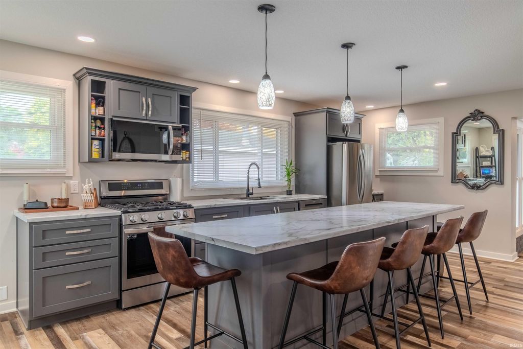 Experience modern living at its finest in this beautifully remodeled brick home, perfectly combining timeless character with luxury updates. Featuring 3 bedrooms, 2 bathrooms, and a partially finished basement, this home offers both charm and functionality. The primary suite includes a bright, spa-inspired bathroom with a luxury design and a walk-in closet, creating a peaceful private retreat. The stunning eat-in kitchen is the centerpiece of the home, offering a large island with seating for five and all-new stainless steel appliances, including a gas stove, dishwasher, and microwave. Downstairs, the partially finished basement provides additional living space. Enjoy peace of mind with a newer metal roof, all-new plumbing, all-new electrical systems throughout, and an all-in-one washer/dryer combo. Relax outdoors in the fenced yard, perfect for pets or entertaining. Ideally located next to Hendry Park and scenic walking trails"”you can even catch a glimpse of nearby baseball games right from your kitchen window. Schedule your tour today!