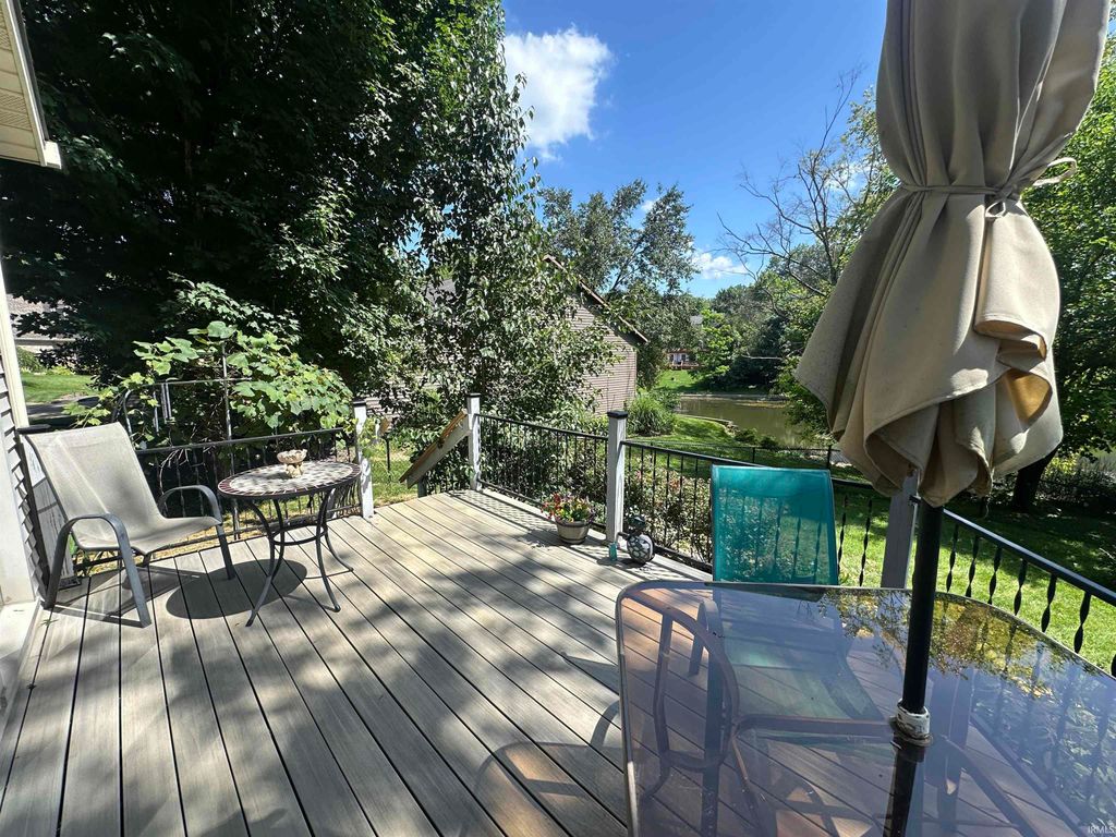 Charming Home in Hyde Park with Pond Views! Nestled on a private cul-de-sac, this beautiful home offers a serene setting with views of the pond and lush landscaping. The main level features stunning hardwood floors, vaulted ceilings in the great room, and large windows that overlook the fenced backyard. A gas stove fireplace adds warmth and charm, while a glass door leads to a spacious side deck"”perfect for enjoying the tranquil pond views. The open layout continues into a sunny breakfast area with a skylight and a wall of windows, which flows into the well-appointed kitchen. Also on the main level is a large den with access to a second peaceful deck, plus a half bath and laundry room for added convenience. Upstairs, the spacious primary suite boasts a vaulted ceiling and a spa-like bath with double vanity, soaking tub, and separate shower. Two additional large bedrooms share a full bath and private hallway, with easy access to an unfinished attic"”ideal for storage. The walk-out lower level includes a generous rec room and an unfinished area perfect for a workshop or additional storage, with access to the backyard through another glass door. New carpet just installed in the lower level finished area. Located in a highly desirable neighborhood, this home offers privacy, views, and functionality in a peaceful cul-de-sac setting"”just minutes from Indiana University, shopping, dining, and all local amenities.