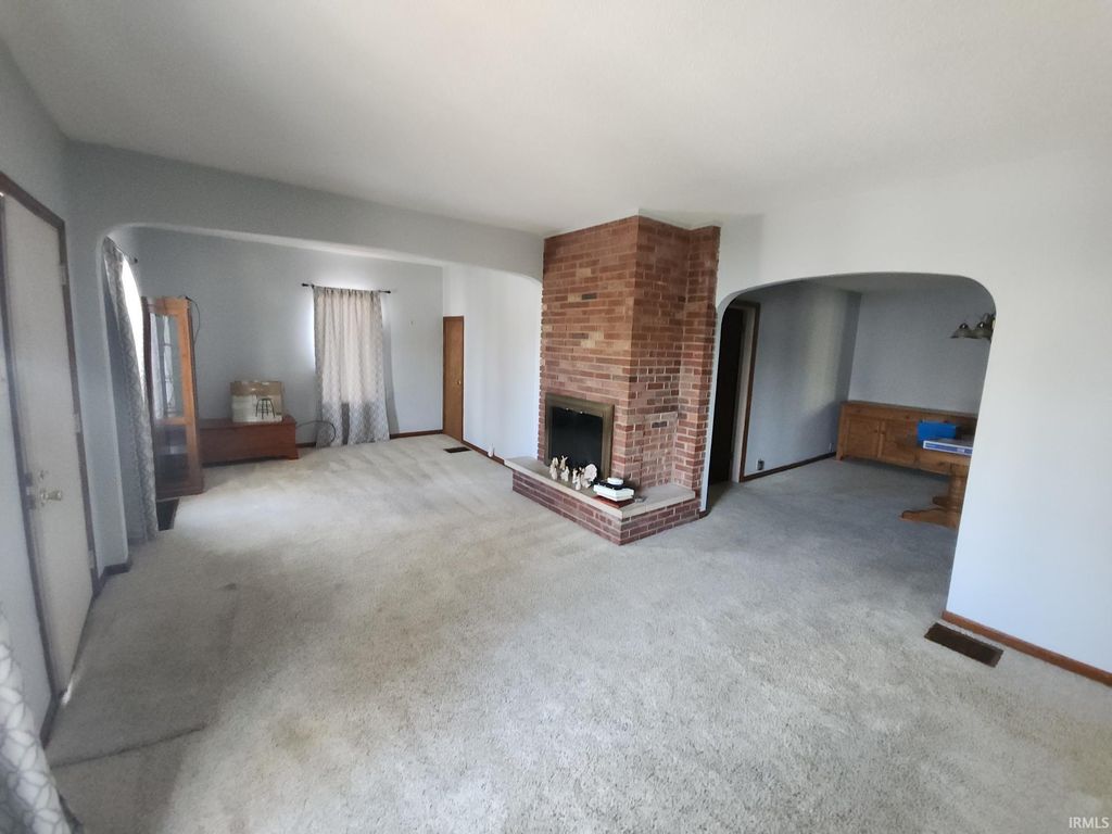 This big beautiful home in Royal Center has tons of storage. Six panel solid wood doors. Large man cave/garage with large doors on 3 sides. Beautiful brick fireplace. Fenced in back yard with a shed. 1 bedroom on the main level and w bedrooms upstairs. Kitchen with stainless steel appliance and built in ovens and cooktop. Walking shower with grab bars.
