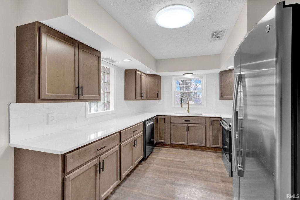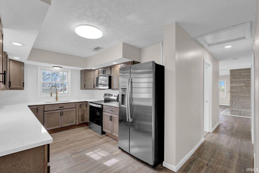 Welcome to a beautifully updated brick ranch nestled in a quiet and established neighborhood in Evansville. This move-in ready 3-bedroom, 2-bath home offers a seamless blend of modern updates and classic charm. Step inside to discover fresh paint throughout, brand-new luxury vinyl plank flooring, and a spacious living room featuring a statement stone fireplace. The fully updated kitchen boasts new cabinetry, countertops, and brand new stainless steel appliances - perfect for home chefs and entertainers alike. Both bathrooms have been tastefully renovated, and the primary suite includes dual closets for ample storage. Enjoy the convenience of main-level laundry, new HVAC system and a large attached garage offering additional storage space. This property sits on a huge lot with a blank canvas for your dream backyard. Whether you're looking for your first home, downsizing, or investing - this move-in ready property is what you have been searching for.