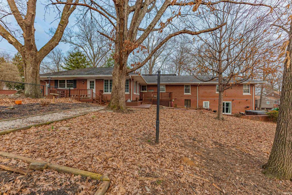 Wow! You have been waiting for this one to come along! Rare find on Evansville's West Side! Brick traditional ranch. Close to great schools, churches, shopping etc. There is abundant storage everywhere in this home. 4/5 bedrooms, large finished walk out basement with full bar and wood burner. Solid wood floors, another fireplace (which is gas), sunroom, glass door knobs, a stainless glass window adds to the charm!. A beautiful tree filled lot with almost 3 acres to enjoy. The home has updated flooring, new stainless steel appliances, trim, etc. It has been lovingly cared for and includes a large garage attached and an additional outbuilding that is great for recreation..i.e. she shed, kids hang out or man's dream space! Very secluded with outdoor deck that is great for sitting in the evenings. There is so much to see with this home. Hot tub, pool table, riding mower are negotiable. Don't miss out!