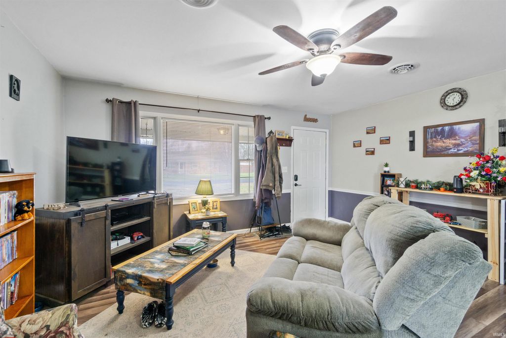 Located in Sweetser, this charming 3-bedroom home offers a spacious open flow from the living room to the kitchen and dining area. You'll love the beautiful windows that fill the space with natural light. The updated kitchen features a gorgeous island that is perfect for cooking, gathering, and everyday living. Enjoy an amazing backyard with partial fencing, ideal for furry friends, plus a nice storage shed. The BRAND NEW metal roof adds peace of mind for years to come. Nestled in an amazing, quiet neighborhood, this home checks all the boxes and is ready for new owners. IMMEDIATE POSSESSION
