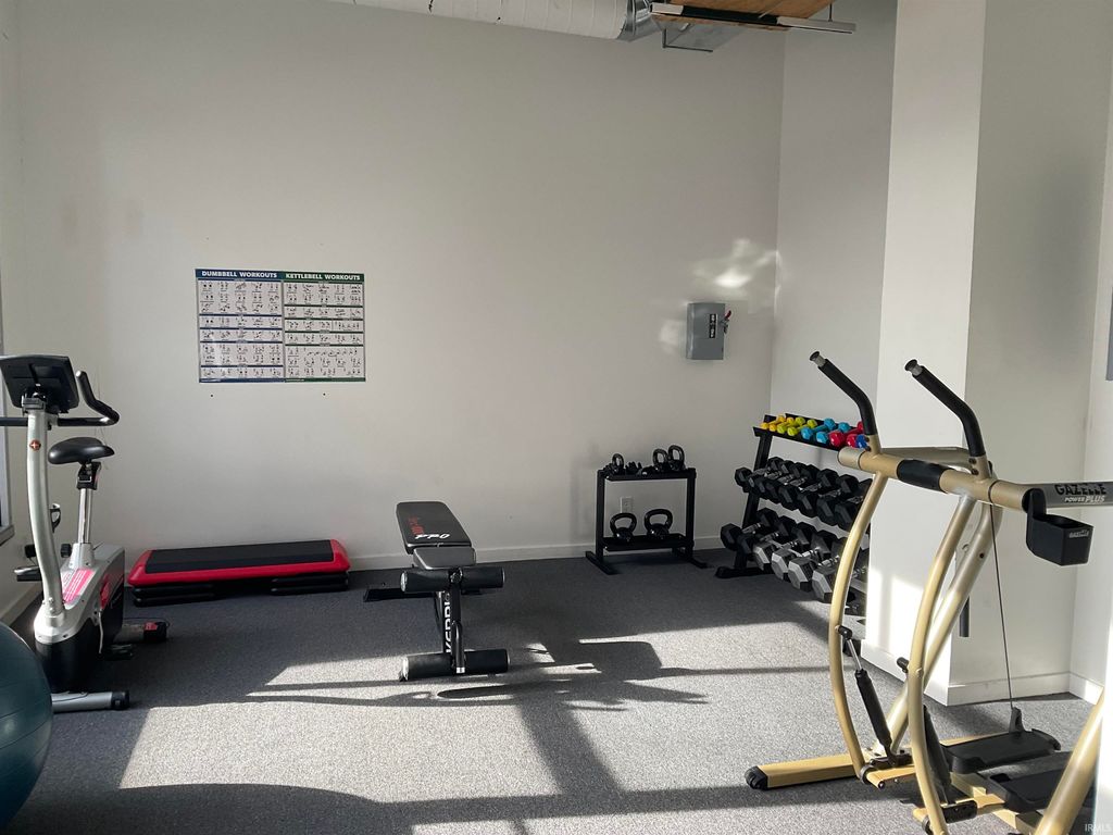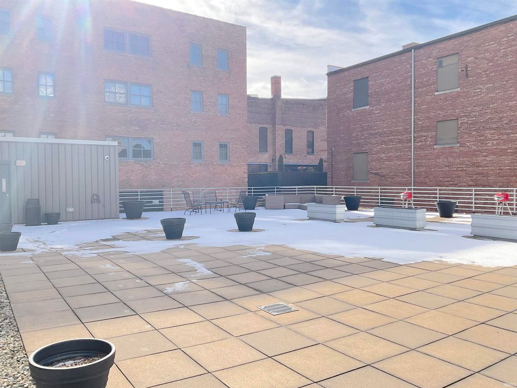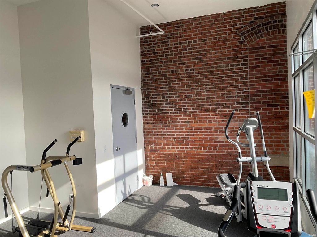 Experience downtown living at its best in this spacious 2-bedroom, 2- bathroom condo with a security system allowing access only to residents and authorized guests. The secured garage parking space is a close to the elevators for your convenience. This lovely condo features soaring high ceilings and large windows, with plenty of natural light and stunning views overlooking Calhoun Street. The thoughtfully designed floor plan offers comfort and convenience,featuring two full bathrooms, large closets, a stylish modern kitchen and generous living space perfect for relaxing or entertaining plus this unit comes a 3x6 storage unit and an exercise room with weights and equipment. Step outside to the outdoor courtyard or the rooftop patio complete with grills, tables and seating. The rooftop patio is secured at all times and the courtyard is secured after 5. Located in the heart of Fort Wayne, you'll be just steps away from the city's best restaurants, coffee shops, parks, art and entertainment venues-all while enjoying the quiet comfort of Midtown Crossing. Additional monthly parking is available. No dogs allowed in this unit.