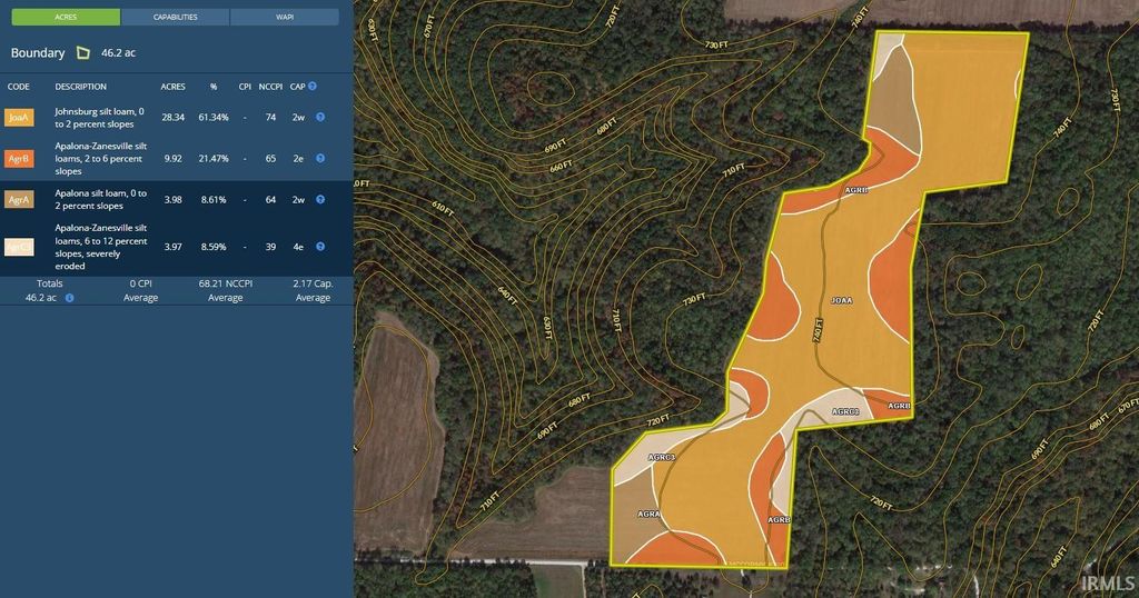 This quality tillable investment property in Crawford Co. is made up of +/-48.93 acres and would be a great addition to your farming operation or investment portfolio. Composed primarily of class II Johnsburg Silt Loam soils with an overall NCCPI rating of 66, this 100% tillable tract is mostly level, highly farmable, and features 905 feet of county road frontage. In 2025, it was in a corn/soybean rotation. NO tenant rights in place for 2026, letting the buyer have the option to determine their best use immediately. Another great option for this tract is an expansive build site, roughly 2800 feet deep, that lets you have the opportunity to set a home way off the road with privacy or possibly multifamily residences. Wooded boundaries on the west and east sides still let you enjoy forest views, with deer and turkey crossing daily. Water, power, and fiber lines run along the property's road frontage. Conveniently located and under 2 minutes to the SR-66/I-64 intersection, making for a perfect location for anyone commuting to the Louisville or Corydon area.