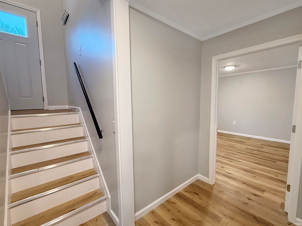Located in the desirable West Lafayette School District near walking trails, this beautifully renovated 3-bedroom, 2-full-bath home offers an open floor plan with abundant natural light. Updates include new flooring and paint throughout, new baseboards, staircase, doors, hardware, and lighting. The stunning kitchen features a barnwood-accent breakfast bar, new cabinets, solid-surface countertops, stainless-steel appliances, and tile backsplash. Both full baths are completely remodeled. Patio doors lead to a private backyard with deck, perfect for entertaining. Ample storage throughout. Close to Happy Hollow Park, Purdue University, shopping, and dining. NEW AC installed 5/3/2024. Stylish. Updated. Ideally located. This is one you do NOT want to miss!