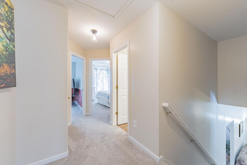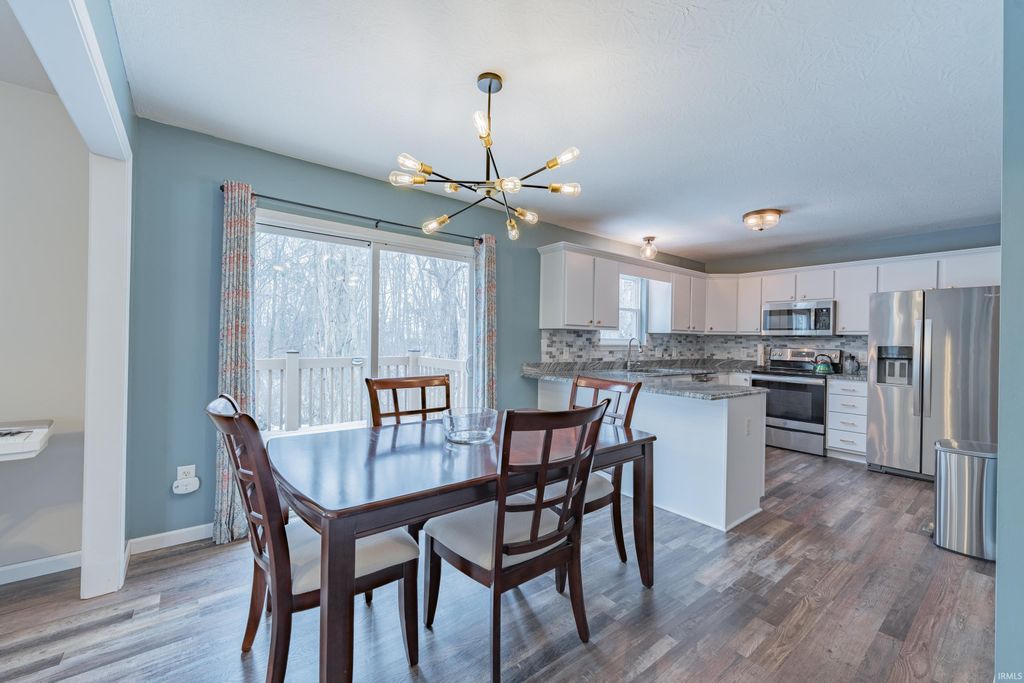 Motivated seller! Situated on a quiet cul-de-sac in the desirable Fieldstone neighborhood, this thoughtfully updated 3-bedroom, 2.5-bath home offers modern appeal and a scenic wooded backdrop. The light-filled living spaces showcase vaulted ceilings and a cozy fireplace. Some of the MANY recent tasteful updates include: new stone countertops; new cabinet doors and hardware; newer stainless steel kitchen appliances; fresh interior paint; replaced deck boards; and newer furnace. The primary bedroom suite overlooks the private backyard, and includes a large walk in closet and gleaming bathroom. The location can't be beat - near west side shopping, Ivy Tech, parks and only a short drive to IU and downtown Bloomington!