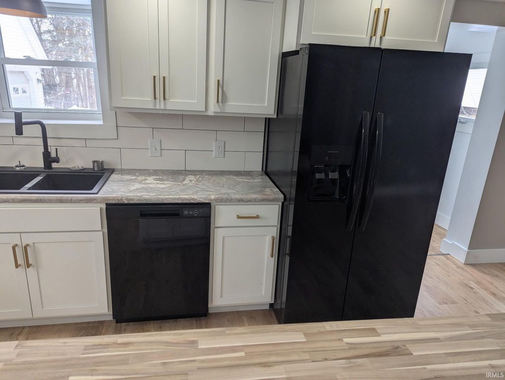 Must See "This Home" is on Dead End Street, Nice and Peaceful! Sit's on .80 acre Home has Tons of Updates from New Drywall to Flooring, Cabinets, Bathroom, Appliance's. Nice Metal Roof, New Deck along with a Barn Style Garage, with upstairs lots of potential. Garage has a Huge, Heated work shop nice office area or just a Great Man Cave! Located minutes from US 20! City Sewer! Just "shy" of being an Acre! New Prarie School"s