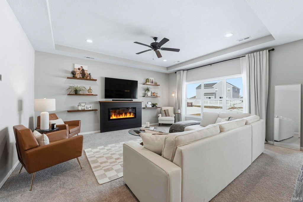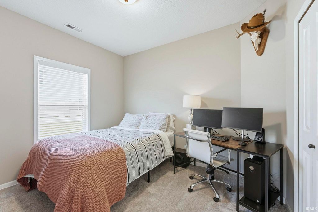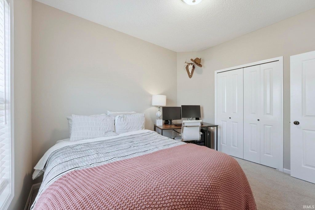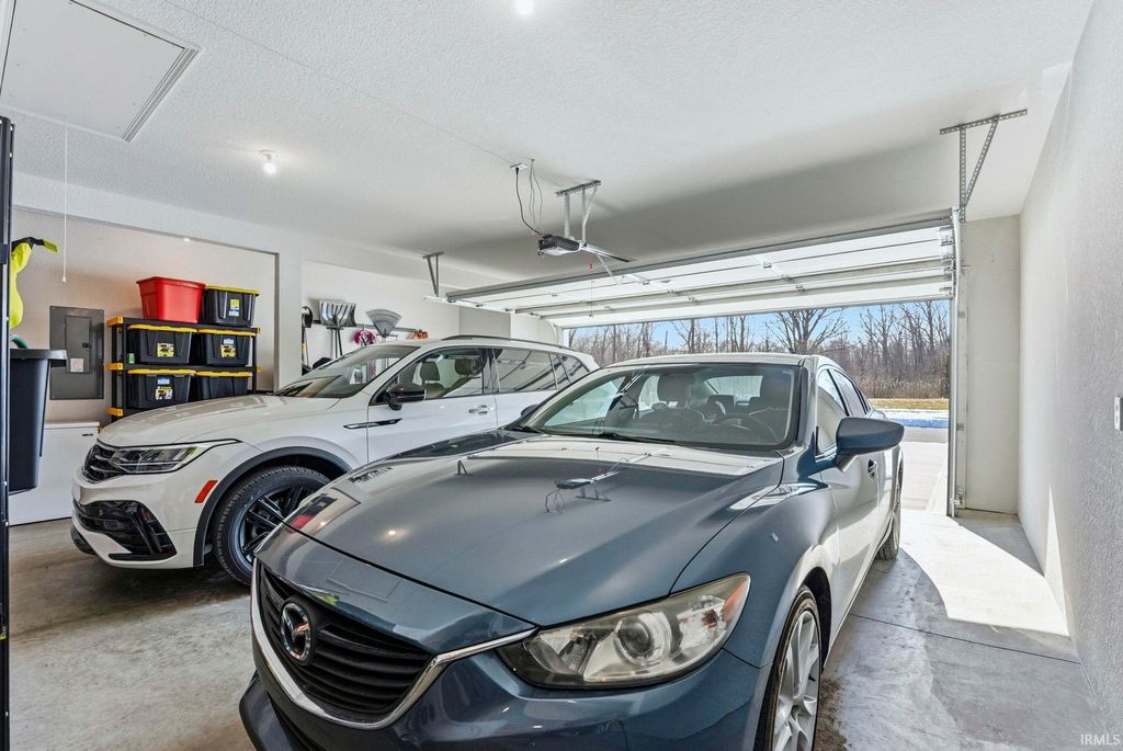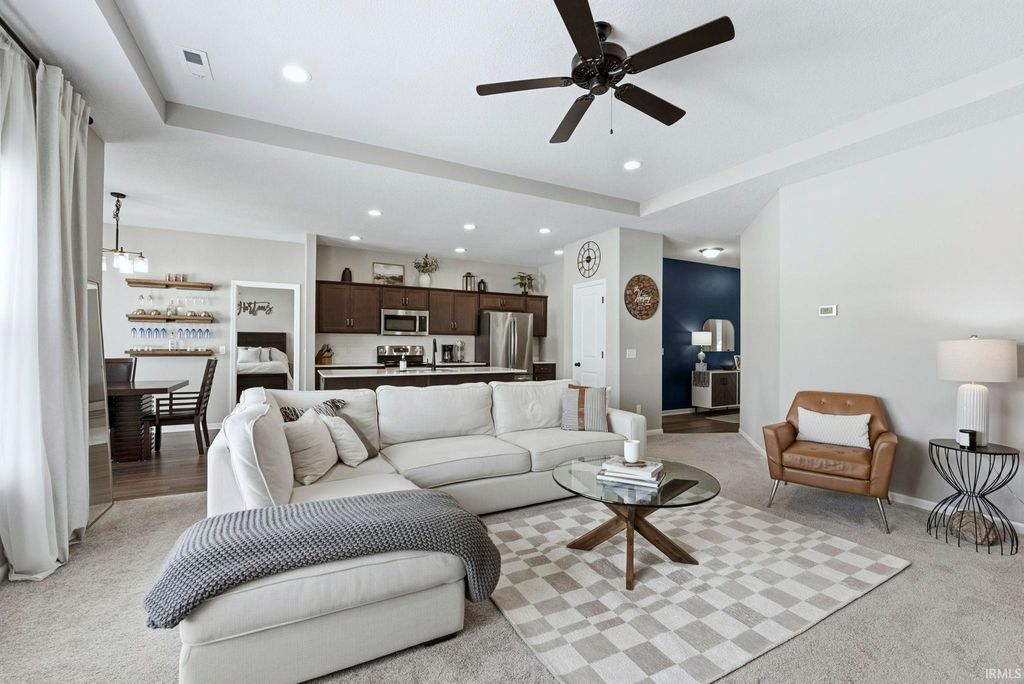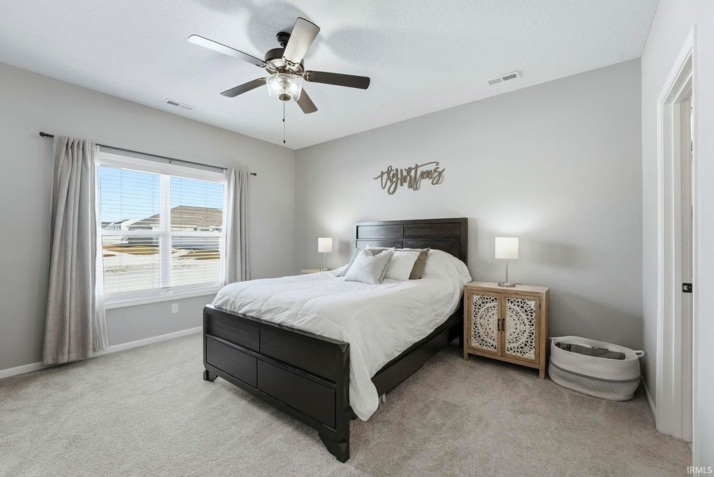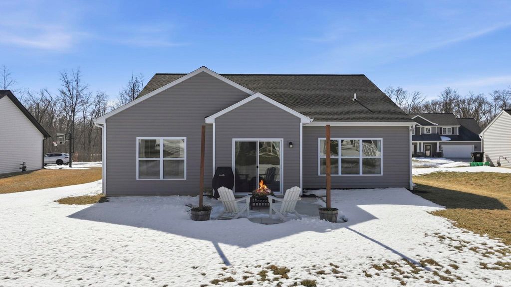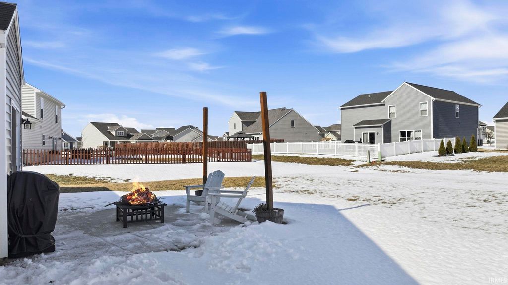 Everything you love and have been searching for awaits. Step into this practically new 2021 split bedroom ranch in SW Fort Wayne where luxury meets convenience. This 3 bedroom, 2 full bathroom gem features an open concept floor plan flooded with natural light, soft close cabinetry, and pristine vinyl and carpet floors throughout. The kitchen features quartz countertops, subway tile backsplash, a large center island, a pantry, a built in breakfast bar, and top-tier stainless steel appliances - a true chef's dream. Relax in the primary suite with an ensuite walk in shower, featuring a dual sink vanity, and a walk-in closet. The 2 car garage has a 4 foot bump out for extra storage, as well as pull down attic stairs with tons of additional storage. Outdoors, enjoy a spacious low maintence backyard with a cool north-facing patio. Conveniently located around the corner from the association pool. Come see for yourself what makes this beautifully maintained SW home the right home for you before it's too late.