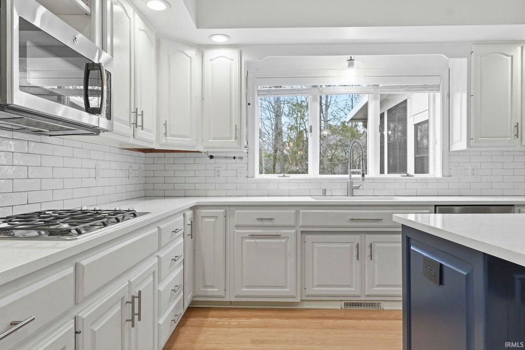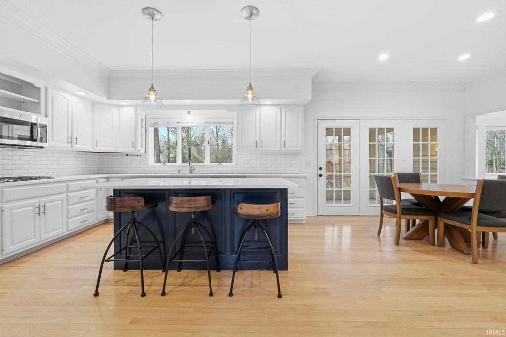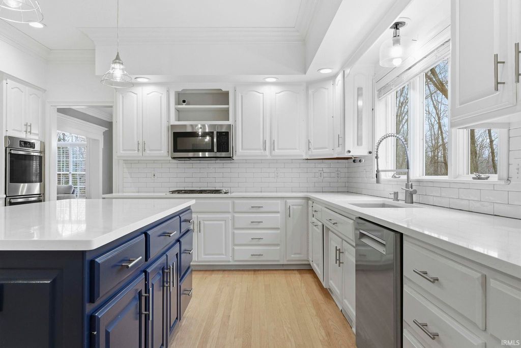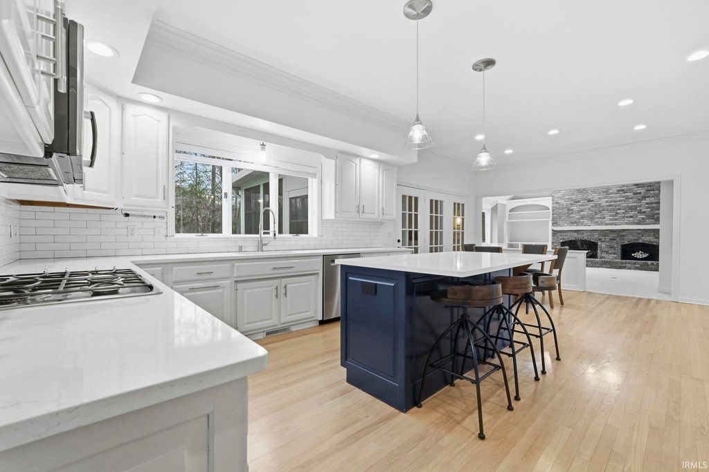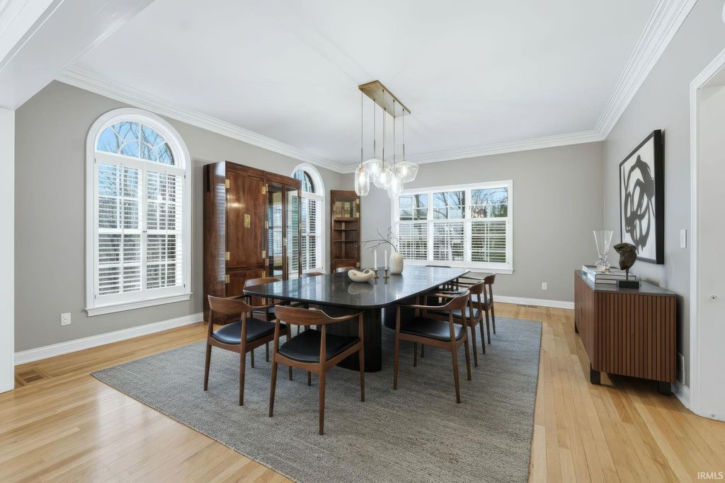 Stunning 4 bedroom brick estate on a finished daylight basement situated on nearly a 1-acre lot in the highly desirable Covington Hollow within the Homestead school district! From the moment you arrive, the impressive curb appeal & stately presence set the tone. Step into the grand foyer with soaring ceilings, flanked by a private office with custom built-ins & a living room that flows seamlessly into the dining room, where expansive windows fill the space with natural light & highlight the recently refinished hardwood floors! The updated kitchen is designed for both everyday living & entertaining, featuring a large center island, quartz countertops, tiled backsplash, abundant pantry space, & an additional dining area. The spacious family room showcases detailed wainscoting, oversized windows, a brick fireplace, & extensive built-in shelving. Upstairs, the large primary suite offers a luxurious en-suite bath with dual vanities, walk-in shower, makeup station, & a large walk-in closet with organizers. One guest bedroom includes its own private en-suite, while the remaining two bedrooms share a full bath. The conveniently located upstairs laundry room includes built-in organizers & a quartz folding counter. The finished daylight basement provides an additional living area with built-ins, full bath, & a versatile rec room ideal for fitness or hobbies! Outdoor living is exceptional with a 3 seasons room & a two-tiered deck overlooking the fenced backyard surrounded by mature trees. The 3 car garage provides ample space for vehicles and equipment and also has plenty of cabinetry for storage, floor drains, and a utility sink! Additional features include a whole-house generator, full-yard irrigation system, recently replaced HVAC systems, and a brand-new roof. Covington Hollow is one of the premier neighborhoods in the Homestead district, offering convenient access to I-69, downtown, schools, shopping, & dining!