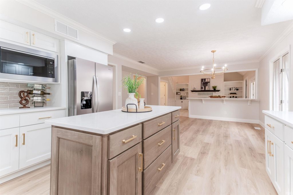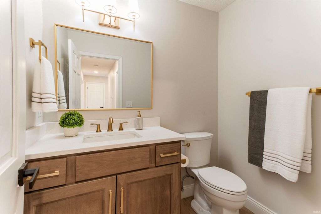 This exceptional McCutchanville home has been meticulously and thoughtfully renovated throughout by blending design with comfort on a beautiful .78-acre lot. Offering 2,879 sqft, 4 bedrooms, 2 full and 1 half baths, this home delivers quality finishes and is ready for new owners. The main level welcomes you with an inviting great room centered around a fireplace with custom bookshelf surround, creating a warm yet sophisticated gathering space. The completely reconfigured kitchen is the heart of the home, featuring an island, custom cabinetry, quartz countertops, new appliances, custom tiled backsplash, and a dining area opening to the great room. A spacious new screened porch extends the living area outdoors, providing the perfect setting to relax while enjoying views of the expansive backyard that stretches beyond the fenced area and includes a storage shed. Throughout the home, new designer fixtures, flooring, and paint create a cohesive aesthetic. The dining room, also ideal as a home office, has been finished in a dramatic, sophisticated tone for a striking first impression. The main-level owner's suite offers a fully redesigned luxury bath with gorgeous cabinetry, a beautifully appointed walk-in shower, commode closet, and much more. A stylish guest powder room continues the home's design with elegant gold-toned finishes. The second level offers three additional spacious bedrooms, a full bath, and a versatile bonus area perfect for a playroom, craft space, and more. Convenience meets function with a laundry room located off the garage, which is accessed by an expanded driveway with additional parking pad. Major updates offer peace of mind, including a new roof, while the furnace, central air, and water heater are approximately five years old. Set on a generous lot in one of McCutchanville's most desirable areas, this beautifully updated home offers space, style, and a great school district.