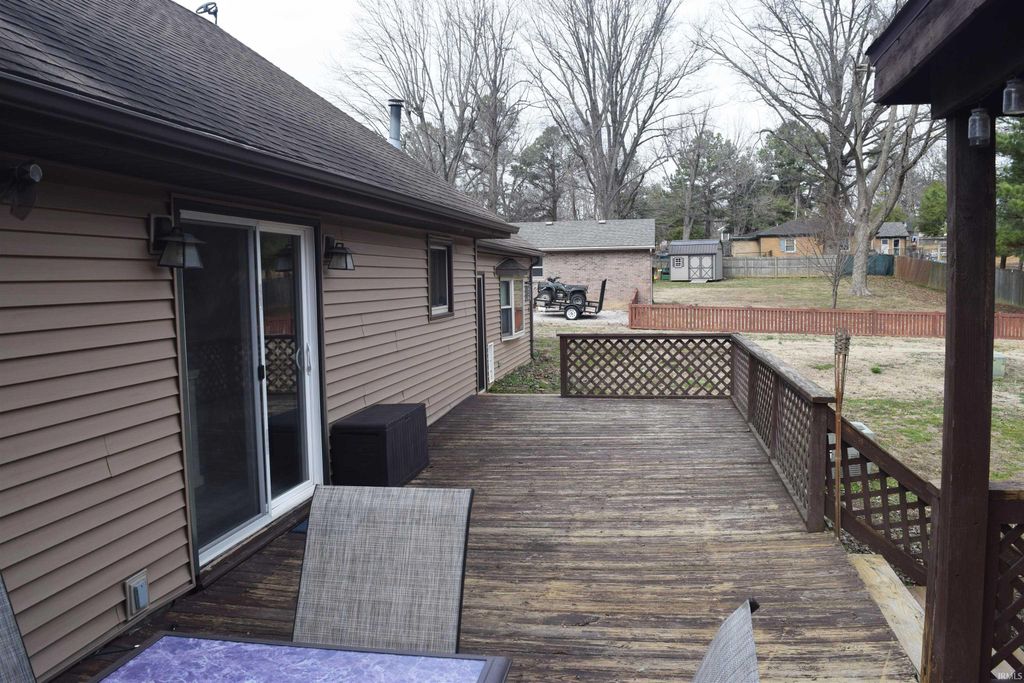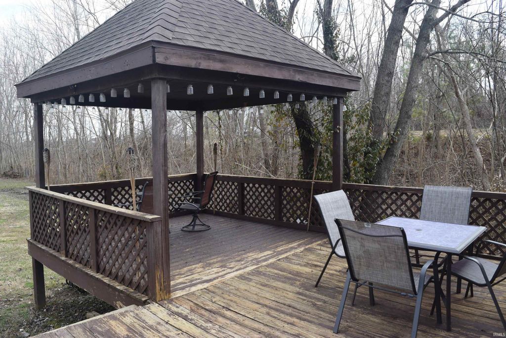 Hurry! Excellent location on prime acreage! This immaculate home is nestled on over 1.5 acres of wooded area, while offering the convenience of being close to every shopping amenity and restaurant in Evansville. This home is surrounded by mature trees, wildlife, and offers country living at its best! Large 3 bedroom, 2.5-baths plus extra rooms upstairs ideal for flex space. On the main level, the large family room boasts a fireplace, pool table, half bathroom and door to the backyard. The main bedroom has an attached sun room with sunken hot tub. Kitchen renovated in 2022 with quartz countertops, new cabinetry, center island with appliance lift, and pantry for storage! Attached 2-car garage with built in full size locker system. The land is a blank slate with ample room for a pole barn or pool! An entertainer's dream! The expansive deck boasts an inviting gazebo that overlooks your private backyard with relaxing water feature. The home sits far back enough off the road, providing great privacy with a picturesque driveway. The one year home warranty for buyer's peace of mind. This property is the perfect blend of space, privacy, rustic charm and modern comfort and could be yours so don't wait!