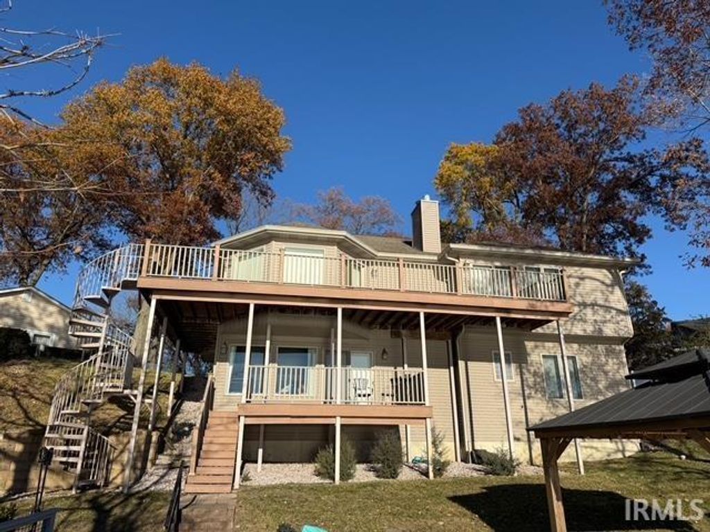 Enjoy lake living at its finest with this beautiful home on Lake Shafer, built in 2005 and offering 2,881 sq. ft. of well-designed space and 119 square feet of water frontage. This 3-bedroom, 2.5-bath home features vaulted ceilings and large windows with stunning lake views from nearly every room. The main-floor primary suite includes a full bath with jetted tub, shower, double sinks, and tile floors. Additional highlights include a whole-house generator, reverse osmosis system, irrigation system, walk-in pantry, six-panel doors, laundry/mudroom off the attached 2-car garage, and a cozy stone fireplace in the Living Room and in the finished lower-level living space with large windows and a bar for entertaining. Outdoors you'll love the boathouse with permanent electric lift and storage for fishing and lake gear, large waterfront deck with views of Indiana Beach, a concrete driveway with ample parking, and a 48x30 insulated pole building with loft on .55 acres. A rare opportunity for comfort, storage, and beautiful lakefront living!