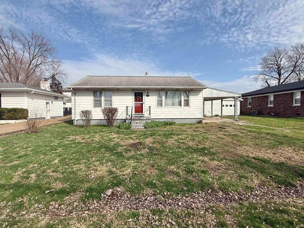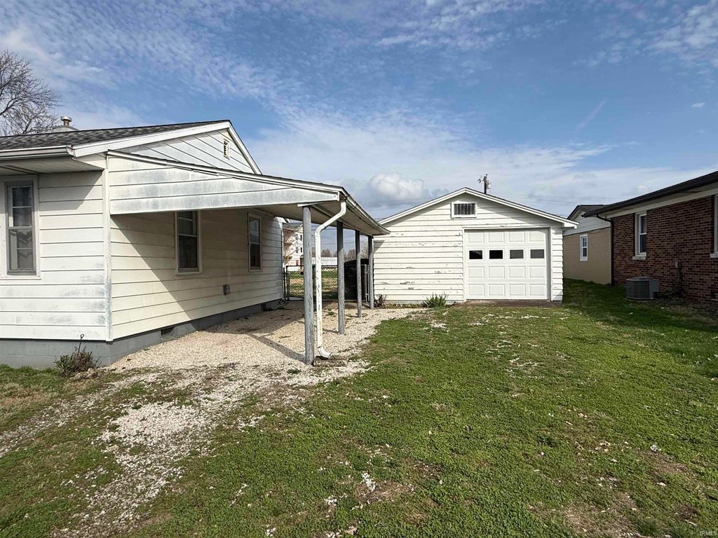 Charming 2-bedroom, 1-bath home located at 3886 Clover Drive in a convenient spot between Evansville and Newburgh. Featuring 828 sq. ft. of comfortable living space, this home offers beautiful hardwood floors, a fenced backyard, and a 1.5-car detached garage with a carport. The interior is in average or better condition and includes some appliances. The exterior is steel sided and you will find lots of perennial flowers popping up in the yard. There a spacious 1.5 car detached garage and a carport. With a bit of TLC"”like a fresh coat of paint"”this property could truly shine. A storage shed adds extra space for tools or hobbies. Great opportunity in a desirable Newburgh location!