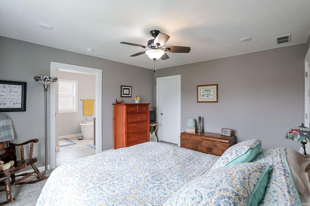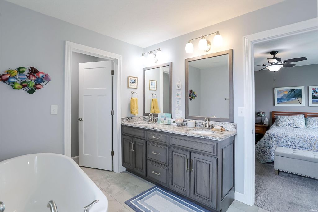 Check out the stunning pictures of this gorgeous custom built home in Timberland Trace Subdivision JUST SOUTH OF BLOOMINGTON! Located only minutes from I69, Bloomington, and an easy commute to Crane and Bedford. This residence is sprawling but cozy with many energy efficient features and offers over 4200 square feet of finished living space. This 4 BR home (WITH A POSSIBLE 5TH BR MASTER SUITE IN THE BASEMENT), 3 BA, 2 car attached garage and nice size yard are a part of this home's appeal. Custom features include Amish made cabinetry throughout including bathrooms and kitchen, designer wooden vent hood, granite counters, farm style kitchen sink, vinyl plank durable flooring, LP Smart Siding, true stone accents, double front door. The master bedroom includes a large walk in shower, double vanities, soaker tub and oversized walk-in closet. The fully finished walk-out basement offers safe room, a gaming area, lounge area and much more!
