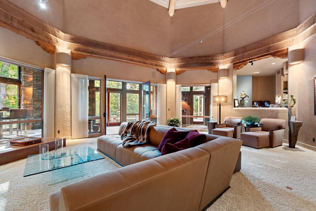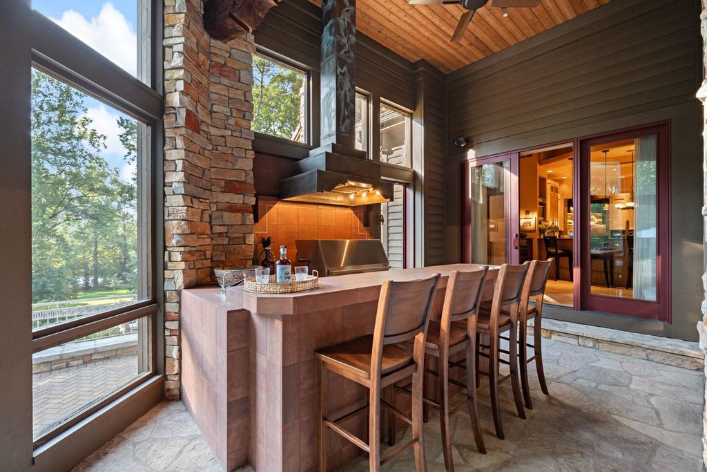 | INTERIOR | Bar, Beamed Ceilings, Breakfast Bar, Built-in Features, Cathedral Ceiling(s), Ceiling Fan(s), Central Vacuum, Entrance Foyer, Kitchen Island, Master Downstairs, Natural Woodwork, Open Floorplan, Pantry, Vaulted Ceiling(s), Walk-In Closet(s), Wet Bar |