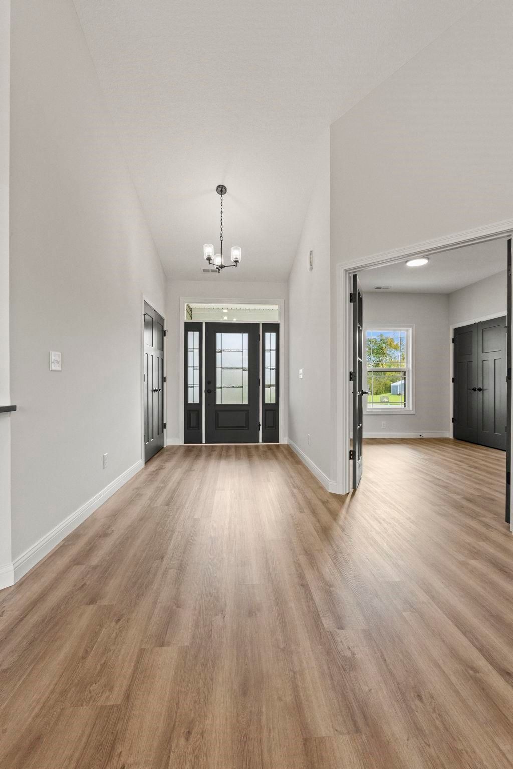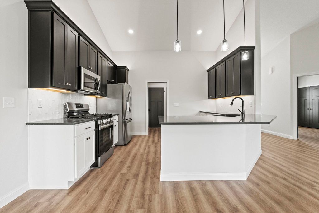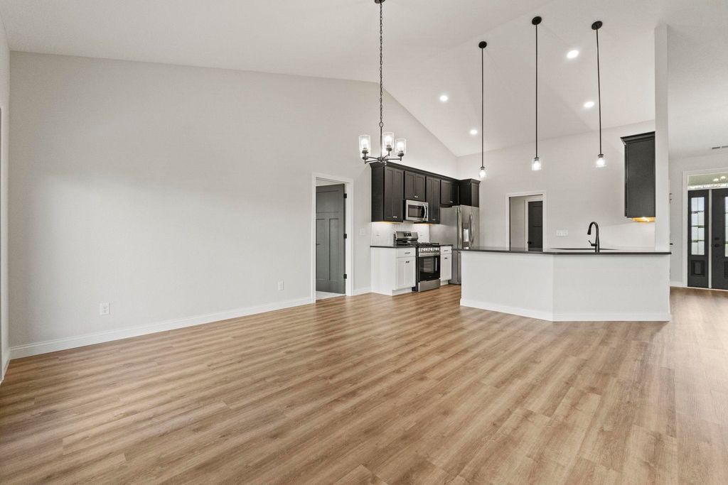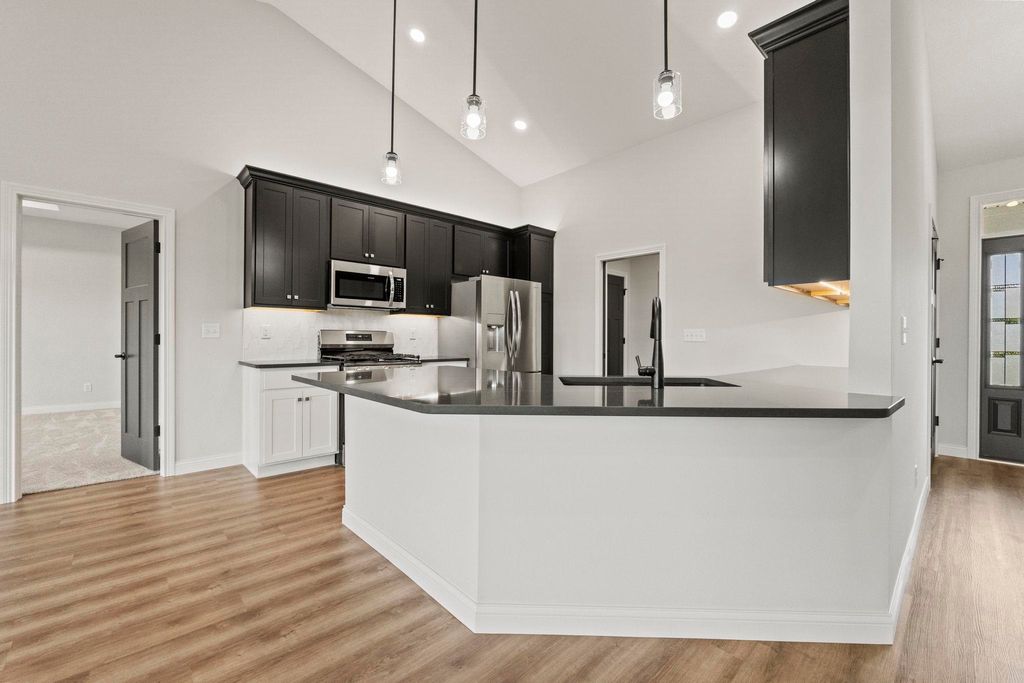 Step into this exceptional Kiracofe-built home in Sycamore Glen, where modern craftsmanship and inviting comfort come together. A charming covered front porch welcomes you inside and sets the tone for the warm, livable elegance found throughout. The open-concept living room, kitchen, and dining area is designed for both everyday living and effortless entertaining. A soaring cathedral ceiling enhances the spacious feel, while luxury vinyl plank flooring and a striking gas fireplace with TV add style and coziness. The kitchen is a true focal point"”featuring gleaming quartz countertops, a designer tile backsplash, soft-close cabinetry, a breakfast bar, and a stainless steel Frigidaire appliance package. Three spacious bedrooms provide room to unwind, and the additional den/office offers flexibility for work, hobbies, or quiet retreat. Both full bathrooms are thoughtfully appointed, and the 3-car attached garage"”with its own utility sink"”adds convenience you'll appreciate daily. Step out back to the covered patio, an ideal spot for outdoor dining, morning coffee, or simply enjoying the peaceful surroundings. Blending modern finishes with thoughtful details, this spotless home delivers comfort, style, and functionality in one stunning package. Annual taxes currently reflect a vacant lot. Use shoe covers or remove shoes.