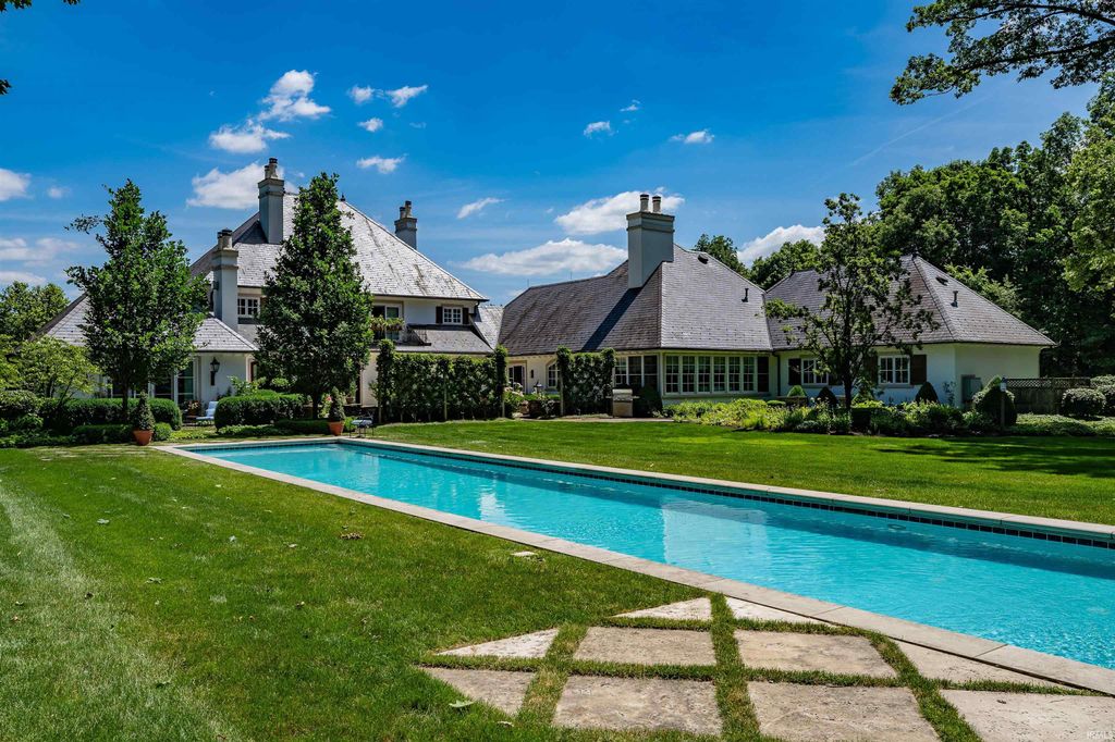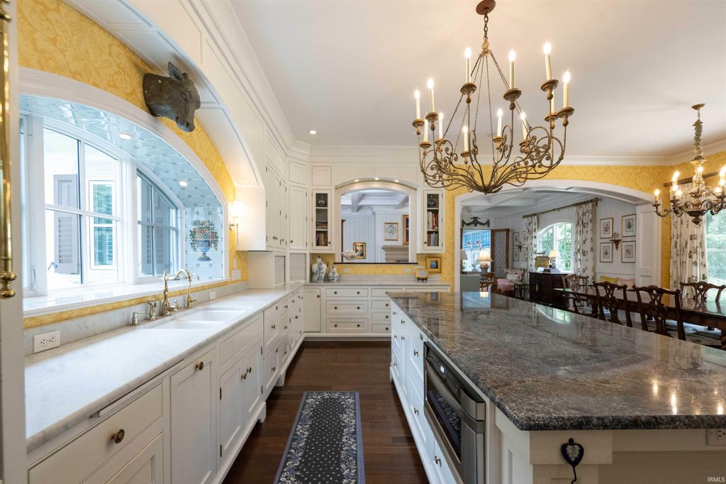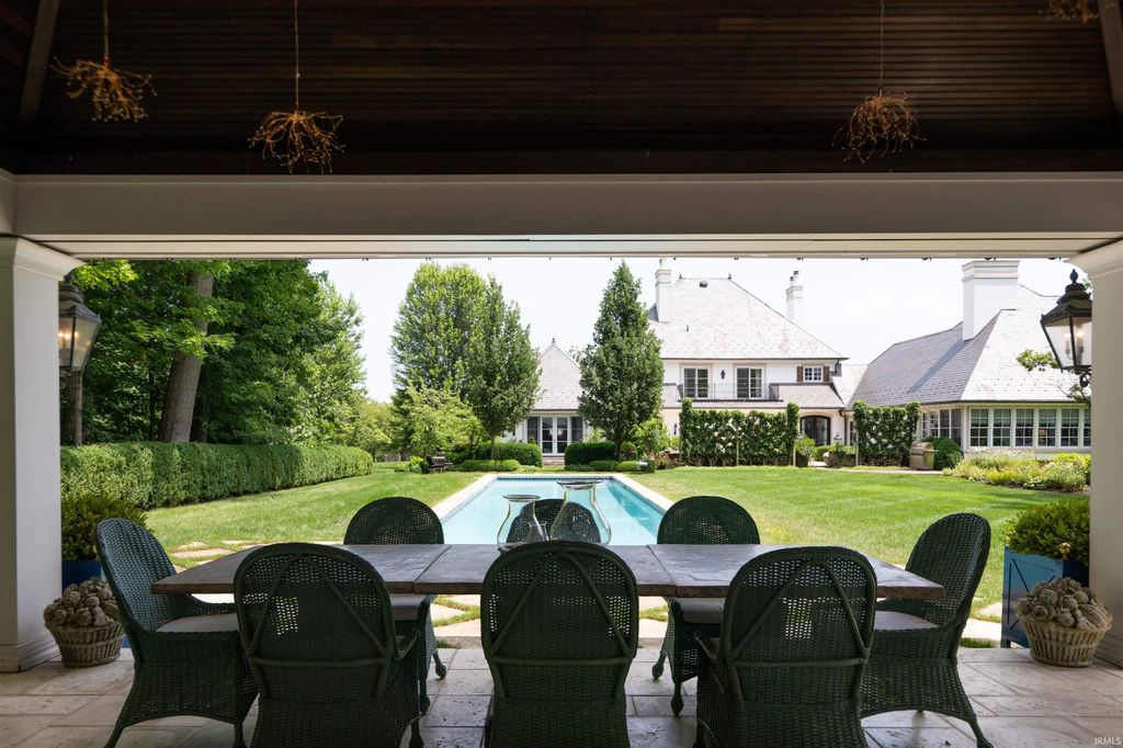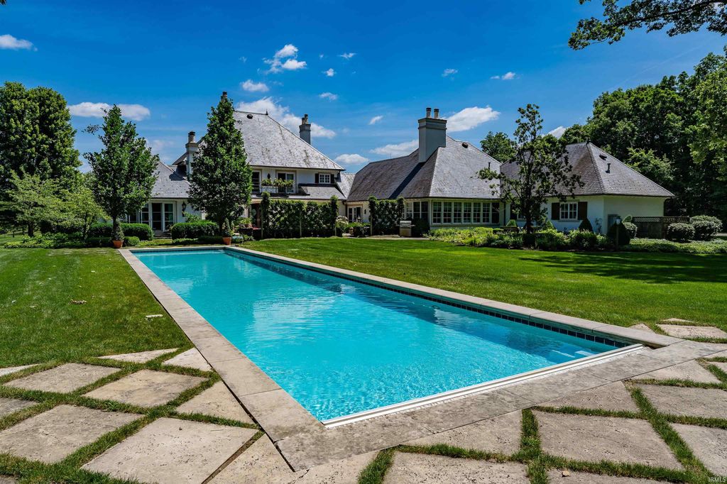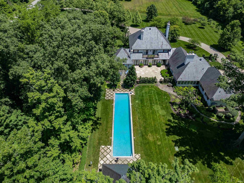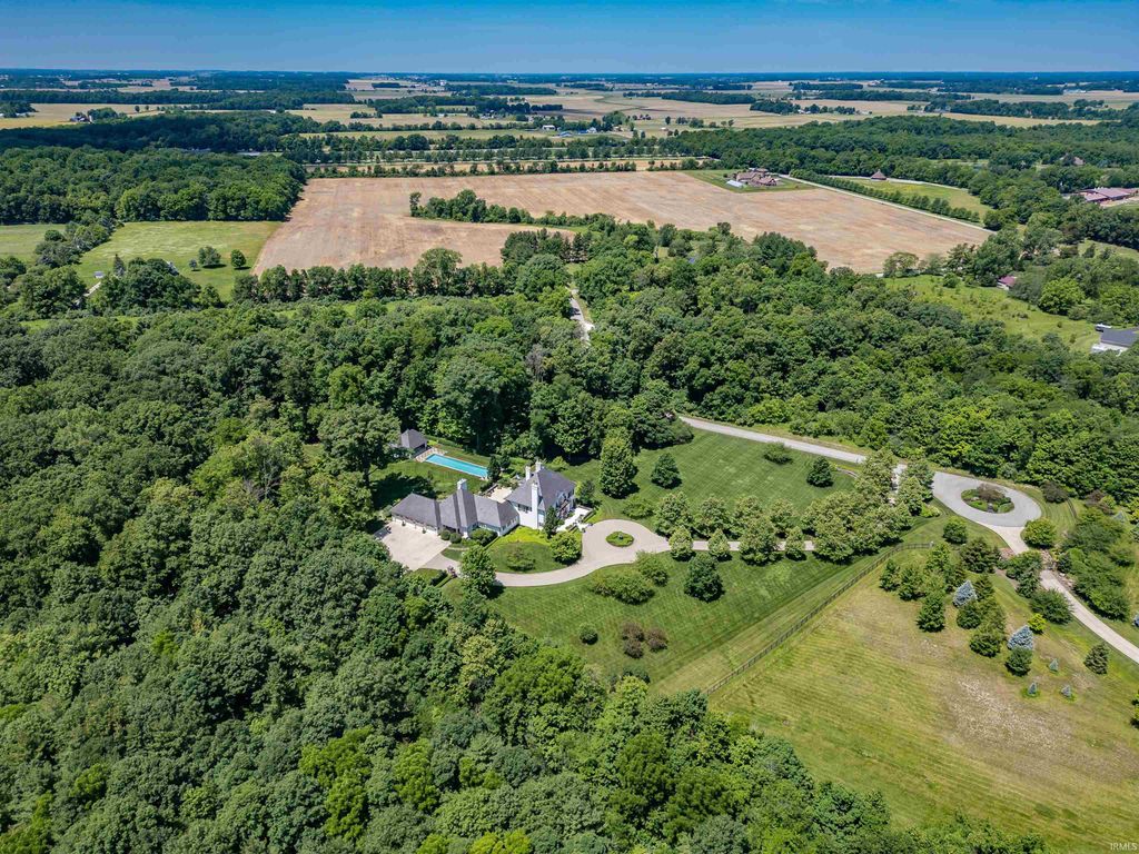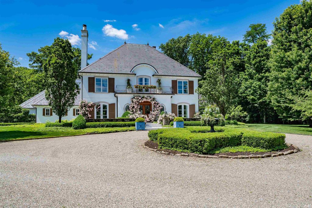 Inspired by the timeless elegance of a French chateau in Brugge, Belgium, this extraordinary estate marries old-world artistry with modern luxury across more than 10,000 square feet of exquisitely designed living space. Crafted by renowned G. Lengacher & Sons, every inch of this residence is a masterclass in curated detail & refined European style. Nestled on 6.8 manicured acres, this private sanctuary boasts a resort-worthy pool, formal gardens surrounded by lush, mature landscaping"”offering a lifestyle as serene as it is sophisticated. Step through arched French doors into a home where imported leaded glass, hand-scraped wood beams, Brazilian hardwoods, Italian marble floors, & French chandeliers converge to create an atmosphere of bespoke grandeur. The wide hallways, adorned with crushed pearlized oyster shell walls, set a regal tone from the moment you arrive. The grand foyer welcomes you into a sunlit & spacious living room with French doors opening to a tranquil courtyard, flanked by a formal dining room & a handsome library/office w/ rich custom built-ins. The heart of the home is a spectacular eat-in kitchen, showcasing a La Cornue gas range, paneled appliances, drawer dishwashers, granite & marble countertops, & a butler's pantry complete w/ tiled counters & a built-in office nook. Adjacent is a refined yet cozy family room w/ coffered ceilings & one of the home's six fireplaces, flowing effortlessly into a breathtaking sunroom where heated marble floors, a tiled fireplace, & walls of windows bring the outdoors in. The primary suite is a tranquil retreat w/ sweeping views of the pool & grounds, a generous walk-in closet, & a luxurious bath featuring a garden tub beneath a stained-glass window"”a reclaimed treasure from an Italian church. Upstairs, discover four beautifully appointed bedrooms, each with artisan finishes, walk-in closets, & access to either en suite or Jack-and-Jill baths, plus two romantic Juliet balconies overlooking the estate. The expansive lower level provides endless versatility"”an impressive home gym, abundant storage, a full bath, & flexible space for a home theater, guest suites, or recreational lounge. The pool house is an entertainer's dream, offering a half bath, fireplace, & seamless indoor-outdoor living amid complete privacy. From the limestone-accents, slate roof, & stucco exterior to the rose-covered archway leading into the estate, this is a home of distinction"”a one-of-a-kind property.