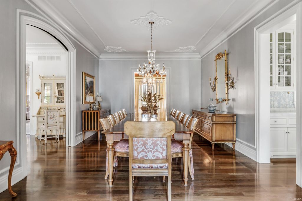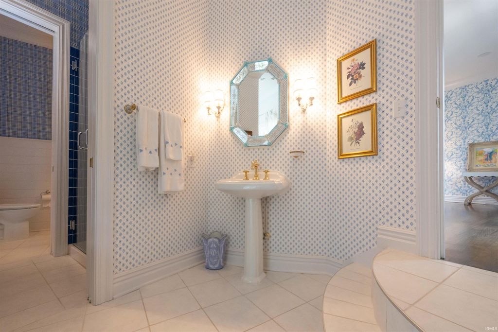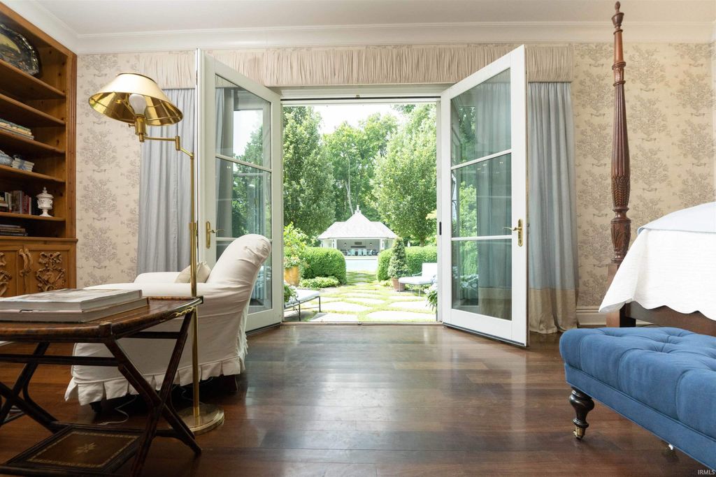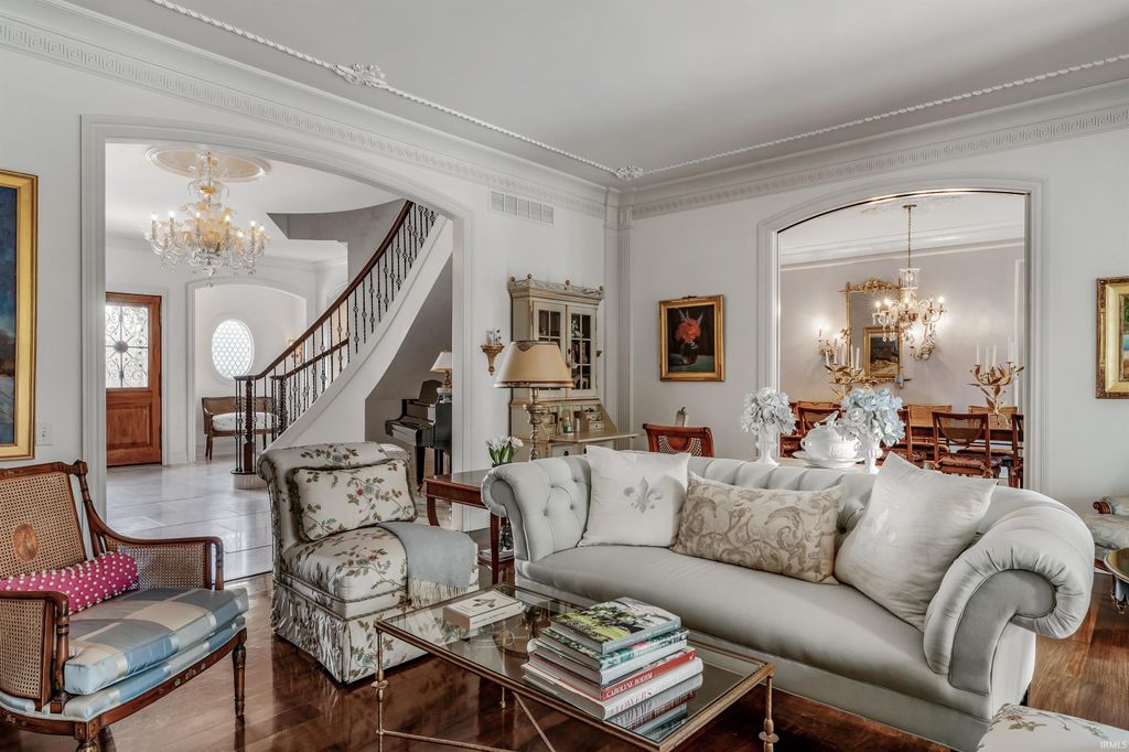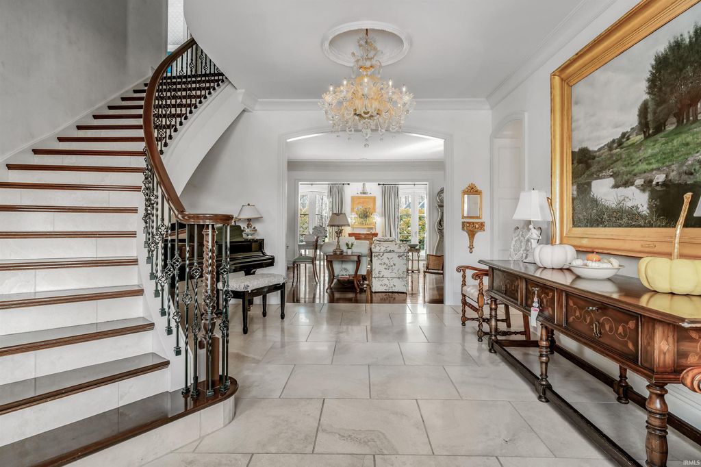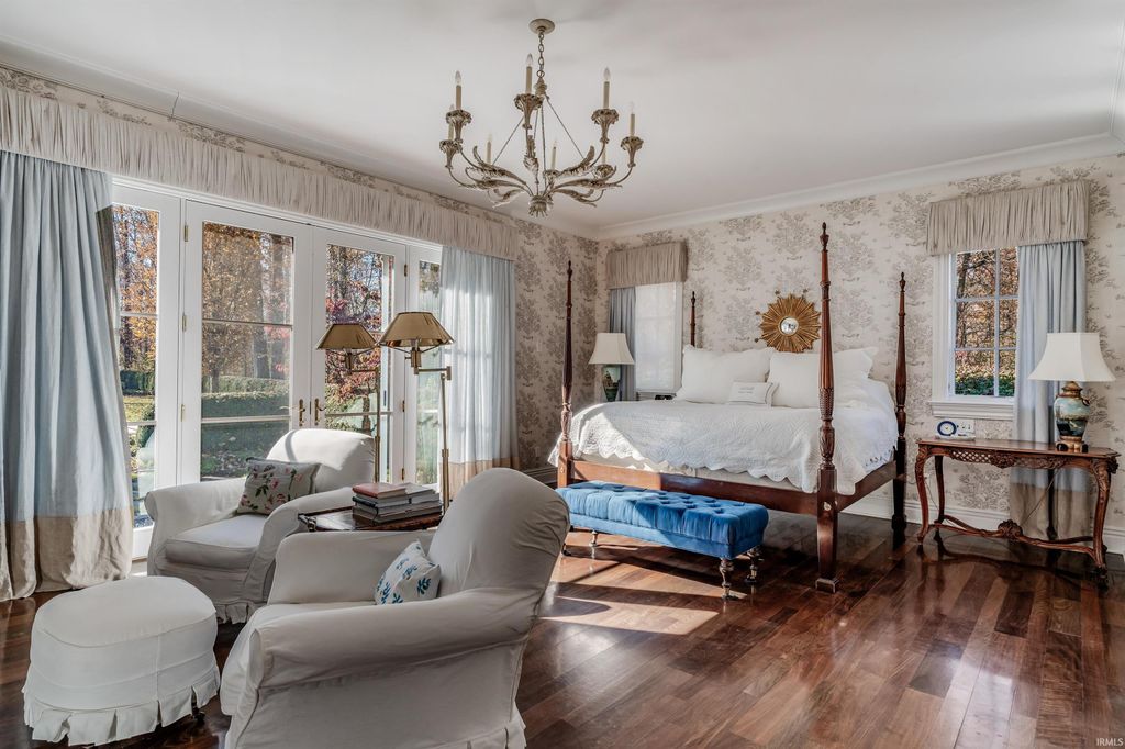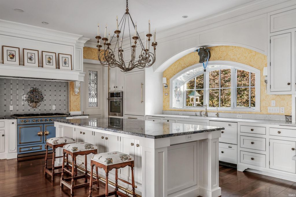 Inspired by the timeless elegance of a French chateau in Brugge, Belgium, this extraordinary estate marries old-world artistry with modern luxury across more than 10,000 square feet of exquisitely designed living space. Crafted by renowned G. Lengacher & Sons, every inch of this residence is a masterclass in curated detail & refined European style. Nestled on 6.8 manicured acres, this private sanctuary boasts a resort-worthy pool, formal gardens surrounded by lush, mature landscaping"”offering a lifestyle as serene as it is sophisticated. Step through arched French doors into a home where imported leaded glass, hand-scraped wood beams, Brazilian hardwoods, Italian marble floors, & French chandeliers converge to create an atmosphere of bespoke grandeur. The wide hallways, adorned with crushed pearlized oyster shell walls, set a regal tone from the moment you arrive. The grand foyer welcomes you into a sunlit & spacious living room with French doors opening to a tranquil courtyard, flanked by a formal dining room & a handsome library/office w/ rich custom built-ins. The heart of the home is a spectacular eat-in kitchen, showcasing a La Cornue gas range, paneled appliances, drawer dishwashers, granite & marble countertops, & a butler's pantry complete w/ tiled counters & a built-in office nook. Adjacent is a refined yet cozy family room w/ coffered ceilings & one of the home's six fireplaces, flowing effortlessly into a breathtaking sunroom where heated marble floors, a tiled fireplace, & walls of windows bring the outdoors in. The primary suite is a tranquil retreat w/ sweeping views of the pool & grounds, a generous walk-in closet, & a luxurious bath featuring a garden tub beneath a stained-glass window"”a reclaimed treasure from an Italian church. Upstairs, discover four beautifully appointed bedrooms, each with artisan finishes, walk-in closets, & access to either en suite or Jack-and-Jill baths, plus two romantic Juliet balconies overlooking the estate. The expansive lower level provides endless versatility"”an impressive home gym, abundant storage, a full bath, & flexible space for a home theater, guest suites, or recreational lounge. The pool house is an entertainer's dream, offering a half bath, fireplace, & seamless indoor-outdoor living amid complete privacy. From the limestone-accents, slate roof, & stucco exterior to the rose-covered archway leading into the estate, this is a home of distinction"”a one-of-a-kind property.