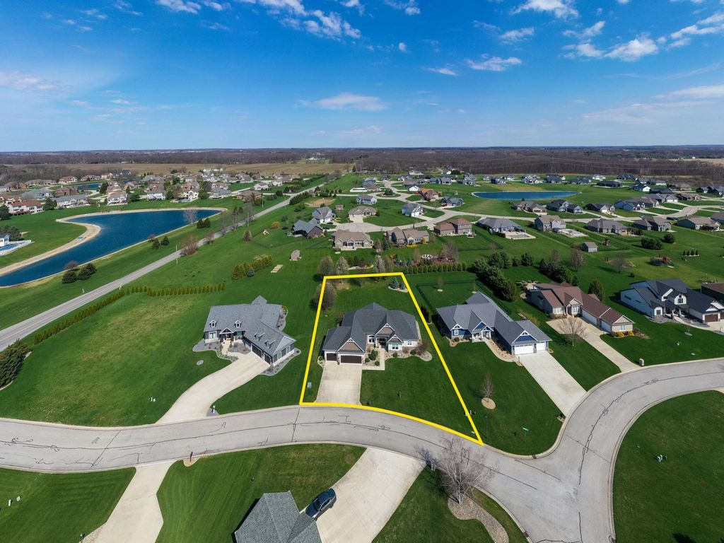 This stunning open-floor-plan home by Kline, located in desirable Stoneybrooke Shores, sits on over a half-acre lot and offers the perfect blend of style, comfort, and convenience. Just five minutes to the Village of Granger, 15 minutes to Downtown Elkhart, and 25 minutes to campus. The moment you arrive, the double front doors set the tone. Inside, you'll notice the wide-plank wood floors, high ceilings, and abundant natural light that give the home its warm, airy feel. The white kitchen features high-low cabinetry, attractive granite, and a large pantry"”ideal for storage and everyday living. A beautiful stone fireplace anchors the open living and dining areas, creating a cozy backdrop whether you're cooking, entertaining, or unwinding in the evening. The spacious primary suite includes his-and-her closets and a well-appointed bath with dual sinks, a private water closet, separate tub, and a huge walk-in shower with a built-in seat for comfort and convenience. In addition to the primary suite, there are three bedrooms plus an office that could easily serve as a fourth bedroom or guest room. The lower level is ready for your finishing touches"”already plumbed for a bath and featuring two egress windows for future living space. The landscaping is beautifully maintained, and the large lots throughout the neighborhood provide wonderful privacy. Enjoy your visit to this quite neighborhood where you do see neighbors walking throughout the day.