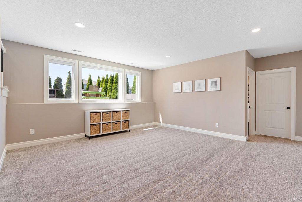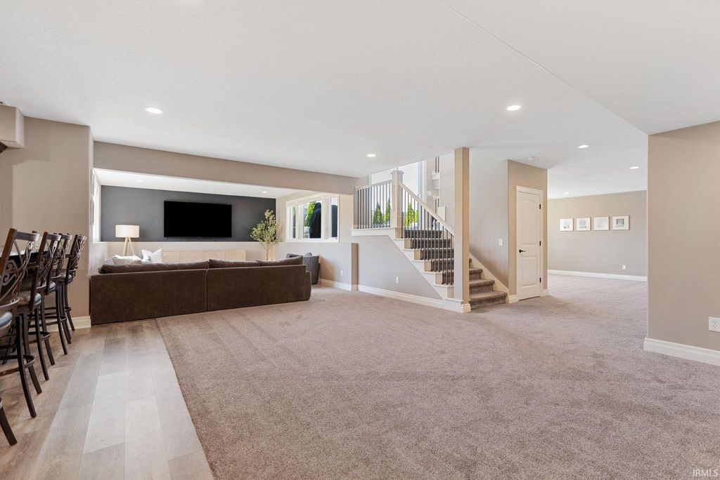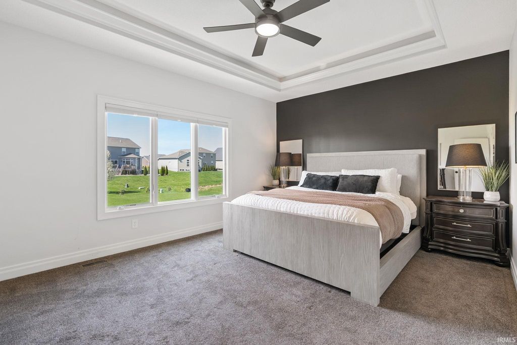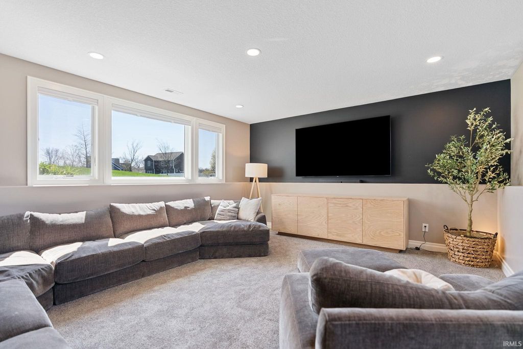 Tucked away in the coveted Grey Oaks in Fort Wayne's 46814, this stunning 5 bedroom, 4.5 bathroom home offers the perfect blend of elegance, comfort, and space to truly settle in. From the moment you step inside, you're welcomed by natural light pouring through massive windows and an inviting layout designed for both everyday living and effortless entertaining. With three separate living spaces, there is ample room for everyone. At the heart of the home is an immaculate kitchen that is sure to impress, featuring quartz countertops, dual islands, abundant custom cabinetry, and plenty of space for hosting holidays, dinner parties, or slow mornings at home. The main level flows beautifully into the spacious living areas and out to the private backyard retreat. Set on nearly half an acre, the .45 acre lot offers a stamped concrete patio surrounded by mature landscaping, creating a peaceful and private setting that is perfect for entertaining or enjoying a quiet evening outdoors.The primary suite feels like its own private escape, complete with elegant tray ceilings, a spa-like ensuite featuring a soaking tub, tiled shower with dual shower heads, and plenty of room to relax. Downstairs, the finished basement expands your living space even further with a full bar, an additional bonus room, and endless possibilities for movie nights, game days, or hosting friends and family. Each of the five bedrooms includes its own attached bathroom access, offering comfort and privacy for everyone. Thoughtfully designed and impeccably maintained, this home combines luxurious details with the warm, welcoming feel that makes it easy to imagine yourself living here. Residents of Grey Oaks also enjoy access to the neighborhood community pool, adding even more opportunities to relax, entertain, and enjoy everything this sought-after neighborhood has to offer.