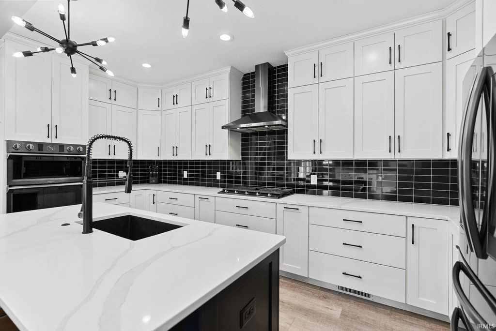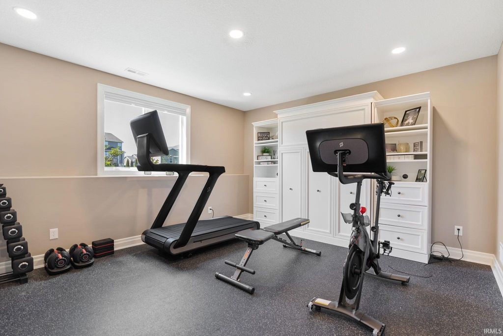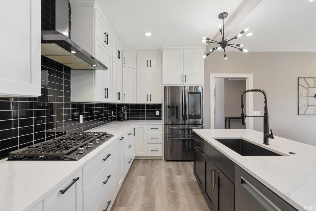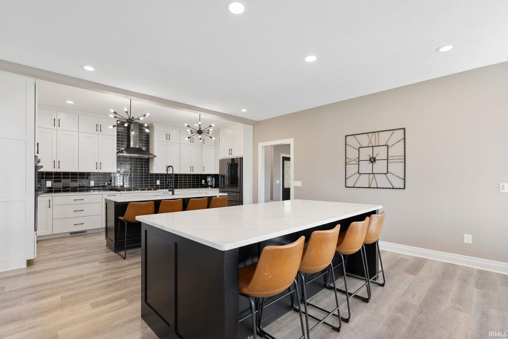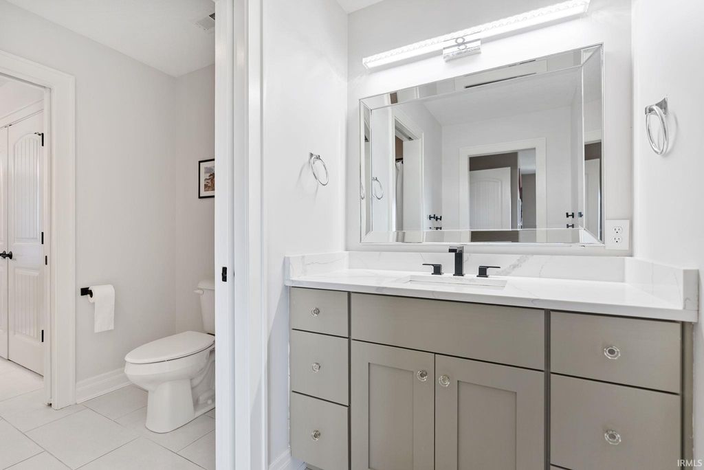 Tucked away in the coveted Grey Oaks in Fort Wayne's 46814, this stunning 5 bedroom, 4.5 bathroom home offers the perfect blend of elegance, comfort, and space to truly settle in. From the moment you step inside, you're welcomed by natural light pouring through massive windows and an inviting layout designed for both everyday living and effortless entertaining. With three separate living spaces, there is ample room for everyone. At the heart of the home is an immaculate kitchen that is sure to impress, featuring quartz countertops, dual islands, abundant custom cabinetry, and plenty of space for hosting holidays, dinner parties, or slow mornings at home. The main level flows beautifully into the spacious living areas and out to the private backyard retreat. Set on nearly half an acre, the .45 acre lot offers a stamped concrete patio surrounded by mature landscaping, creating a peaceful and private setting that is perfect for entertaining or enjoying a quiet evening outdoors.The primary suite feels like its own private escape, complete with elegant tray ceilings, a spa-like ensuite featuring a soaking tub, tiled shower with dual shower heads, and plenty of room to relax. Downstairs, the finished basement expands your living space even further with a full bar, an additional bonus room, and endless possibilities for movie nights, game days, or hosting friends and family. Each of the five bedrooms includes its own attached bathroom access, offering comfort and privacy for everyone. Thoughtfully designed and impeccably maintained, this home combines luxurious details with the warm, welcoming feel that makes it easy to imagine yourself living here. Residents of Grey Oaks also enjoy access to the neighborhood community pool, adding even more opportunities to relax, entertain, and enjoy everything this sought-after neighborhood has to offer.