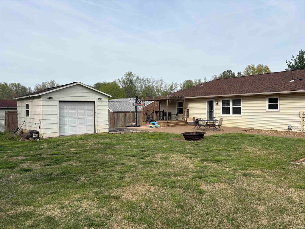 Located in the desirable Whispering Hills area of Newburgh, this well-maintained 3-bedroom, 2-bath ranch offers exceptional space, functionality, and versatility. The property features both a 1.5-car attached garage and an additional detached 1-car garage, along with extra driveway parking and access to a fenced area"”perfect for a trailer or recreational vehicle. Inside, you'll find a spacious eat-in kitchen with ample workspace, a comfortable dinette area, and direct access to the patio and deck"”ideal for everyday living and entertaining. The home includes three generously sized bedrooms and two full bathrooms, with durable hard-surface flooring throughout for easy maintenance. Step outside to enjoy the deck, already equipped with an electrical hookup for a future hot tub. Major updates provide peace of mind, including a roof that's just 1 year old and a water heater that's only 2 years old. This home combines practical features with great outdoor space"”ready for its next owner to move in and enjoy.