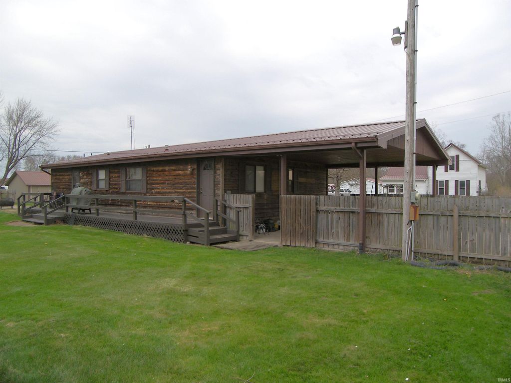 Quick possession available with this cedar sided 3 bedroom 1.5 bath ranch on 4 lots at the south edge of the rural community of Tippecanoe. Large 10x30 front entry deck leads to the spacious living room that flows to the dining room and kitchen. Primary bedroom has dual closets and a private door leading to the bathroom. Split BR arrangement with a Jack N Jill half bath between the other two BRs. Amenities include: laundry room, newer metal roof, high efficiency Bryant GFA furnace, central AC, water softener, modern 4 inch well, NIPSCO gas & electric. Attached 16x24 carport with easy access to the full length rear deck. This corner lot setting has a 20x20 pole building construction 2 car garage (electric, finished), a 10x16 storage shed (with loft area) and concrete storm shelter (with electric). The yard offers a privacy fence, garden area, strawberry patch plus apple & nectarine trees. Low low taxes are only $237 per year! Own your own piece of paradise within a reasonable drive to larger communities.