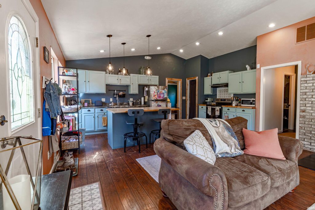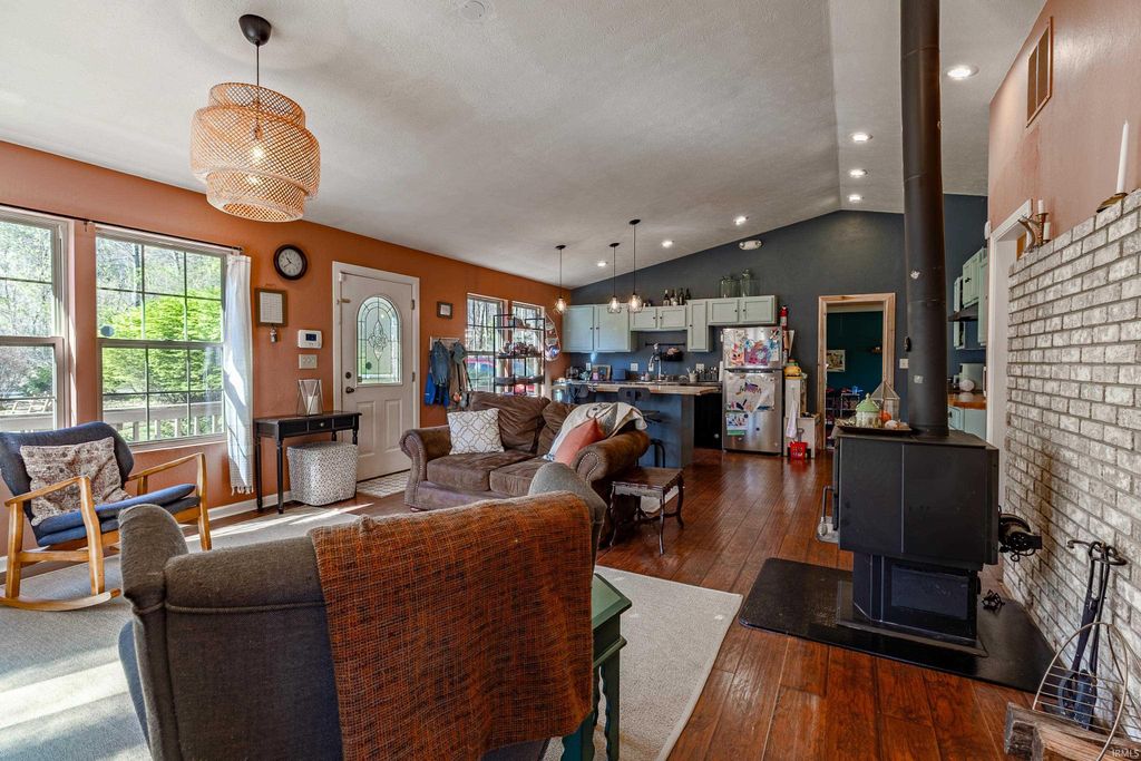 Great home on 2.56 acres. If you are looking for privacy then this is your home. Short distance from Highway 69 off of the 445 exit, so only 25 minutes from Bloomington. Open concept with family room, large spacious Kitchen with an Island. New HVAC, Oven, Refrigerator and Wood-burning Stove. This is a corner lot so you have a lot of privacy. Priced to sell!