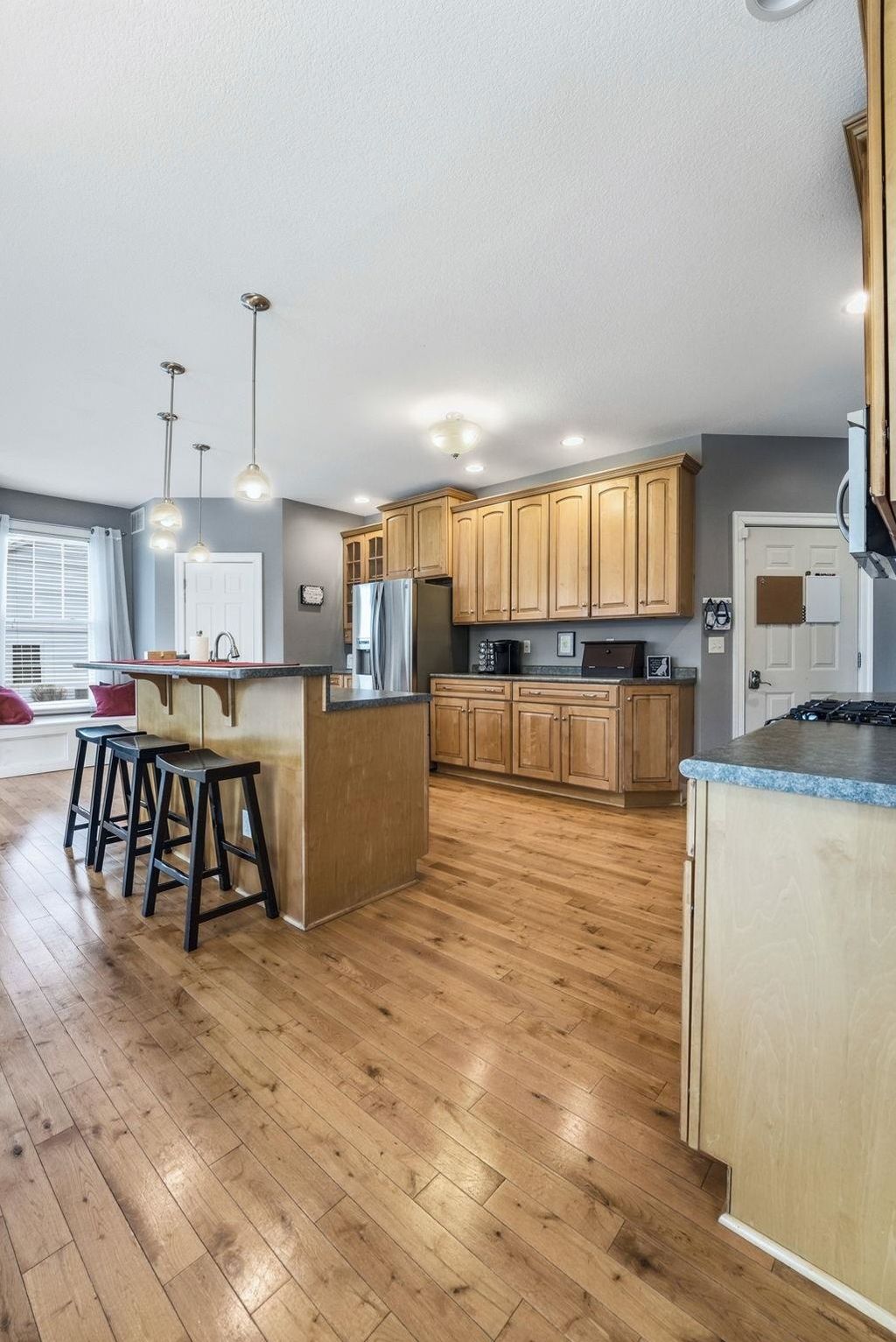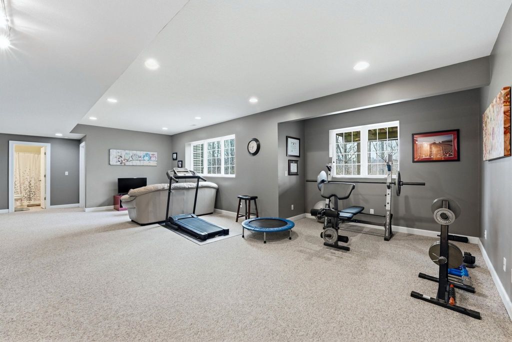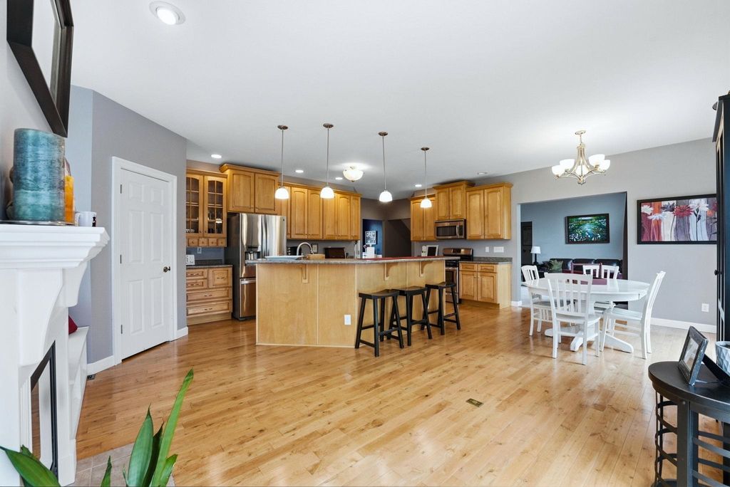 Stunning Custom 5-bedroom, 3.5 bath home located in the prestigious Glendarin Hills community, offers exceptional quality, comfort and a gorgeous golf course you could walk right to! Your next home is nestled on a spacious lot, just under half an acre with separation of trees in the backyard, giving you the privacy you need, but the ease of access to the golf course, restaurants and all amenities you could ever need. For those active folks, this is close to walking/running/bike trail too! The thoughtfully designed floor plan includes a main-level LARGE primary suite with ample natural lighting all the way across the back and a spa-like en-suite featuring a soaking tub and separate shower. As you walk through, you will be impressed with the craftsmanship and high-quality finishes this property offers. The expansive kitchen and hearth room features solid maple cabinetry, hickory flooring, a large walk-in pantry with an automatic light switch. The kitchen is equipped with stainless steel appliances and plenty of counter space for the cook in the house. The fully finished walkout lower level adds tremendous living space, a large family room with a wet bar and full bath. Enjoy 9' ceilings throughout and a cathedral ceiling in the living room. Washer and dryer hookups are available on every level for added convenience. The home includes multiple heating options, and the bonus room in the upper level can be used for storage or finished for an extra space, playroom, etc.