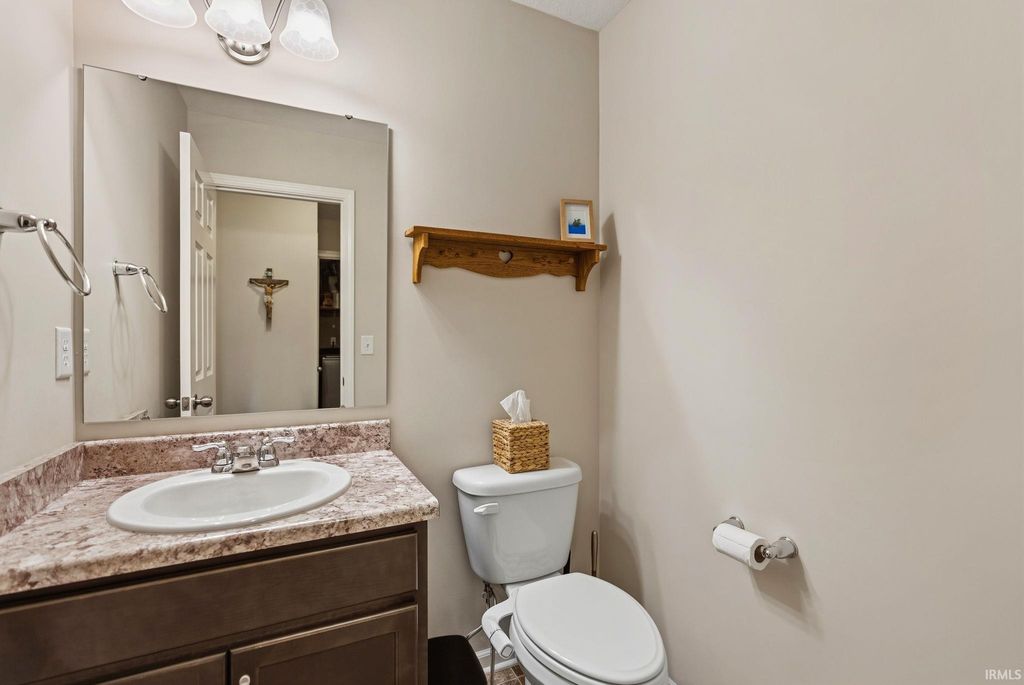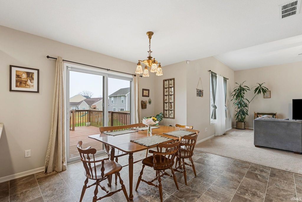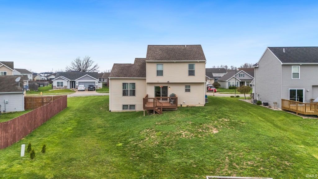 ***OPEN HOUSE Sunday 4/12 from 12-2PM***Two-story home in the desirable Cypress Pointe subdivision of Southwest Allen County! A welcoming foyer leads into a spacious, well-lit living room that flows into the kitchen and dining area, featuring a breakfast bar, stainless steel appliances, and easy access to the outdoors. The main floor also includes a convenient half bath and laundry room. Upstairs, you'll find three sizable bedrooms and two full baths, including a private ensuite with a double-sink vanity. The full basement offers ample storage and potential to be finished for additional living space. Enjoy relaxing or entertaining on the open back deck overlooking the large yard and neighborhood pond!