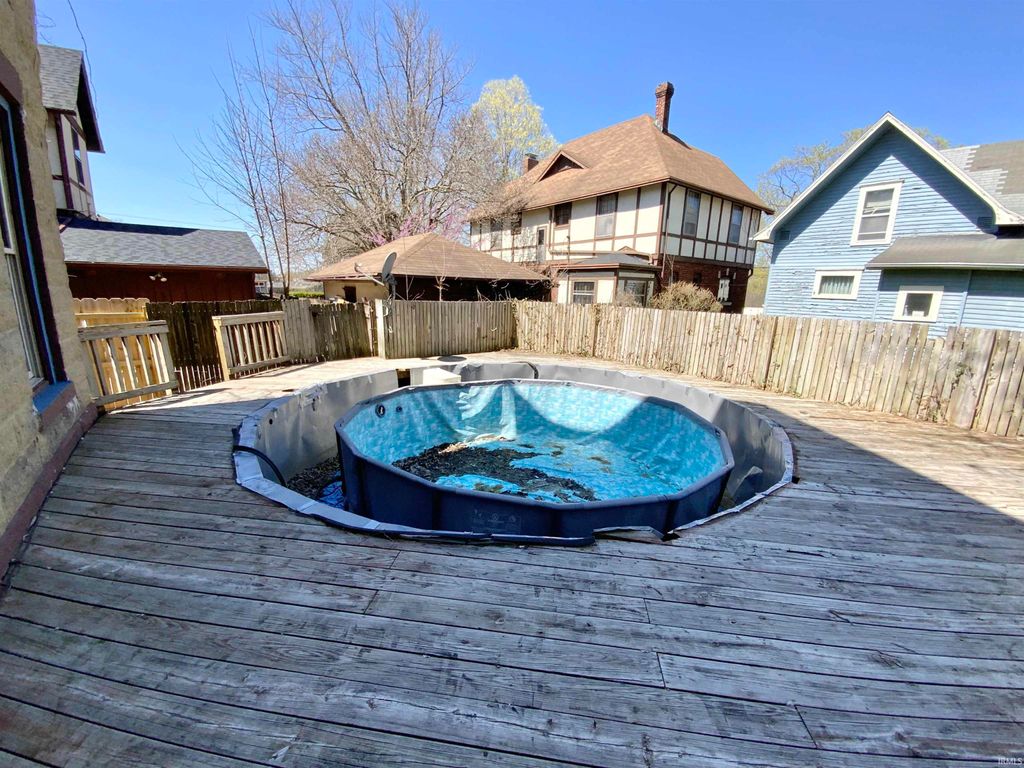 Two story home offering 3 bedrooms and 1.5 baths. Features include original woodwork, hardwood floors, pocket door and original fireplace. Exterior includes a private driveway, shed, privacy fenced backyard, and large deck (previously used for an above-ground pool; pool needs replacement). Property being sold as is. Exterior needs some TLC. Bring your ideas and make it your own.