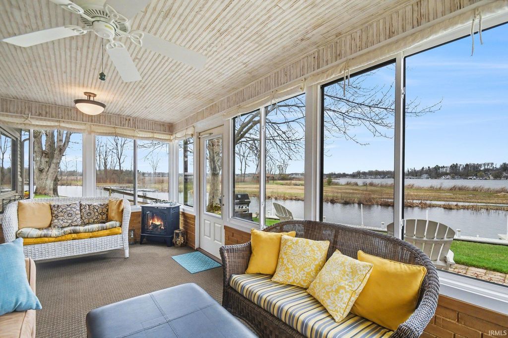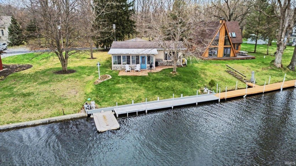 PROPERTY FOR AUCTION. ONLINE BIDDING NOW OPEN! Take this opportunity to bid on this beautiful waterfront property on Lake Wawasee, the premier lake in Indiana. Built in 1958 this lake cottage has been fully remodeled and features 1135 square feet including the finished four seasons room. Home has 2 bedrooms, 2 baths, and a remodeled kitchen with stainless steel appliances. Attached to the home is a 480 square foot carport that is perfect to use for outdoor entertaining or car storage. For your storage needs, there is 10' x 14' storage shed. Now walk outside to your back porch made of pavers with a built-in grill to enjoy those beautiful lake views. The home has 0.17-acre lot with 50' of channel frontage and included with the home is the full pier. This home has beautiful unobstructed lake views of Lake Wawasee and sunsets over the lake. This is a unique opportunity to purchase a waterfront home on the channel, with lake views, and seconds from being on the lake.