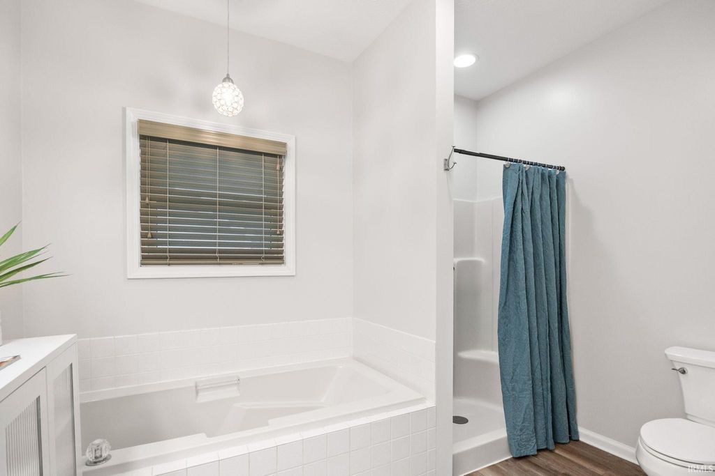 Beautiful 4 bedroom, 2.5 bath home in the highly sought after Waterstone subdivision. Filled with natural light, this home features large windows and soaring vaulted ceilings that create an open and inviting feel throughout the main living spaces. The flexible floor plan offers a spacious great room with a cozy fireplace, eat in kitchen, and a versatile flex space perfect for a home office, playroom, or formal dining. The main floor primary suite provides comfort and convenience with a well appointed bath including a garden tub, walk in shower, dual vanity, and large walk in closet. Upstairs, you will find three additional bedrooms and a full bath, offering plenty of room for family or guests. Enjoy the fully fenced backyard with space for relaxing, entertaining, or gardening. Conveniently located near shopping, dining, and schools. Recent updates include a new privacy fence, fresh paint, washer and dryer, refrigerator, and garage storage. A home warranty will be transferred to the new owner at closing.