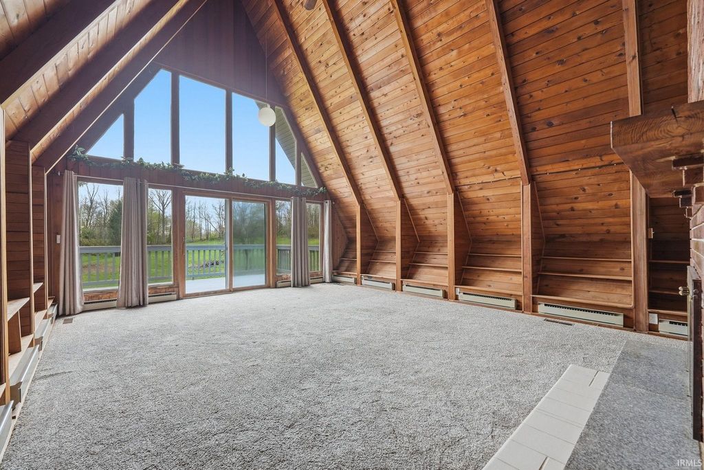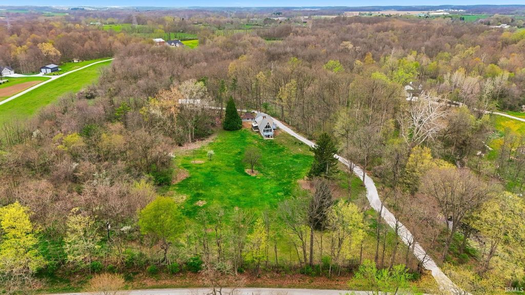 Escape to nearly 6.5 private acres in the peaceful countryside of Roanoke where this nearly 3,000 square foot A-frame cabin delivers striking architecture, warm character, and room to truly spread out. Just minutes from Fort Wayne. From the moment you step inside, soaring vaulted ceilings and incredible custom wood paneling create a dramatic yet inviting atmosphere. The main living area is anchored by a floor-to-ceiling brick fireplace and framed by expansive windows that draw in natural light and showcase the surrounding wooded views. The kitchen and adjacent living spaces connect seamlessly, offering functional flow for both everyday living and entertaining. With four bedrooms and three full baths, the layout provides flexibility across multiple levels, including a finished walkout basement that adds valuable additional living space ideal for guests, recreation, or a private retreat. Outdoor features continue to impress with an oversized detached two-car garage and a spacious pole barn, providing abundant storage for vehicles, hobbies, or equipment. The expansive acreage offers privacy, open green space, and endless potential to enjoy nature right outside your door. Combining architectural charm, usable land, and versatile living space, this unique property presents a rare opportunity in a highly desirable rural setting. Updates include: new HVAC, plumbing, kitchen, electrical, well system, newer metal roof and MORE! Schedule your private showing today!