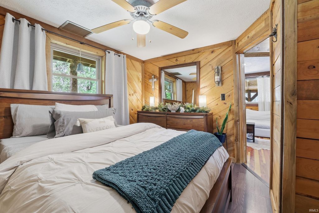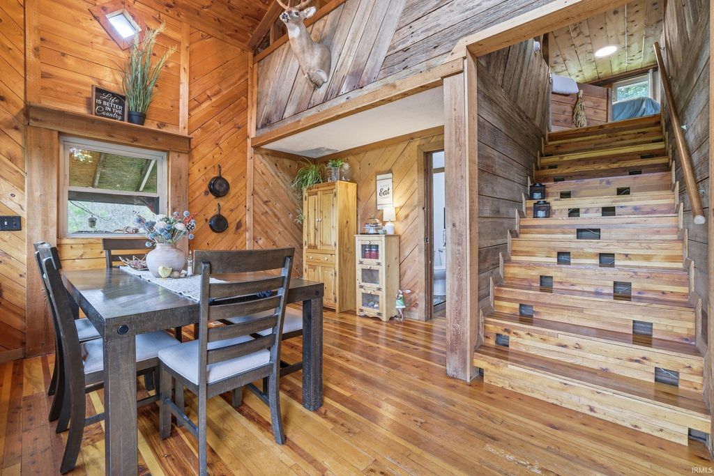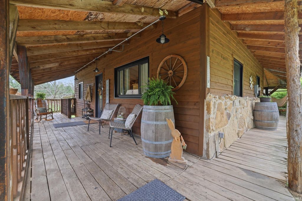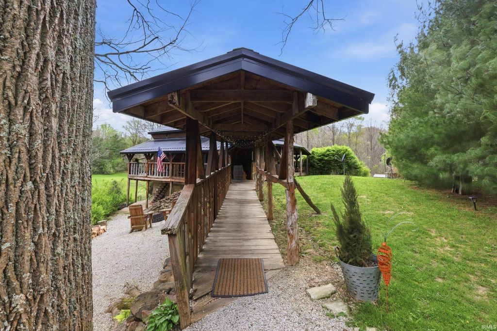 Wait until you see this custom-built cedar and Brown County stone home! Don't be misled by the two-bedroom count"”this property also features a walk-out basement that adds valuable living space and versatility! But first, let's talk about all the NEW updates! Completed in 2026: New claw-foot tub and shower unit in main-level bathroom. New in 2025: a new roof on both the cabin and garage, new windows, cedar on the eaves, and fresh exterior staining. In 2024, a 40x30 detached garage was added along with a new well pump. The home offers natural fencing of evergreen trees that line this property all 4 seasons! It sits on 10 beautiful acres and showcases incredible character with wood walls, exposed barn wood, and hardwood floors throughout. The inviting living room flows seamlessly into the kitchen, creating a warm and open gathering space. The kitchen features open shelving, stainless steel appliances, and granite countertops. Just off the kitchen, the dining area offers patio doors leading to a wraparound deck that is covered on three sides"”perfect for entertaining, relaxing, or simply enjoying the peaceful setting. Upstairs, the massive bedroom offers endless possibilities. It can serve as a luxurious primary suite, creative studio, office, or additional living area. The lower level includes another room, a full bathroom, and a laundry/mechanical room"”adding even more flexibility to the home's layout. Step outside and experience the natural beauty of this property. The woods, ponds, and meadow attract an abundance of wildlife, including deer, fox, numerous bird species, and even Blue Heron. Check out the 12x6 shed/barn in the fenced area. Ever considered a mini farm? This could be it! The views from this home are truly limitless. Multiple windows overlook two stocked ponds and a park-like meadow, creating a setting that feels like your own private retreat. A dream location for nature lovers, hikers and outdoor enthusiasts! Speaking of, this could also be considered for an AirBnb per Owen County Planning and Zoning! This home is conveniently located too. It is only 10 minutes from the west side of Bloomington and I-69 and also offers high-speed internet! To top it all off, the property is surrounded by 150 acres of Nature Conservancy land, providing unmatched privacy, protected views, and extraordinary natural beauty. It truly is a must see!