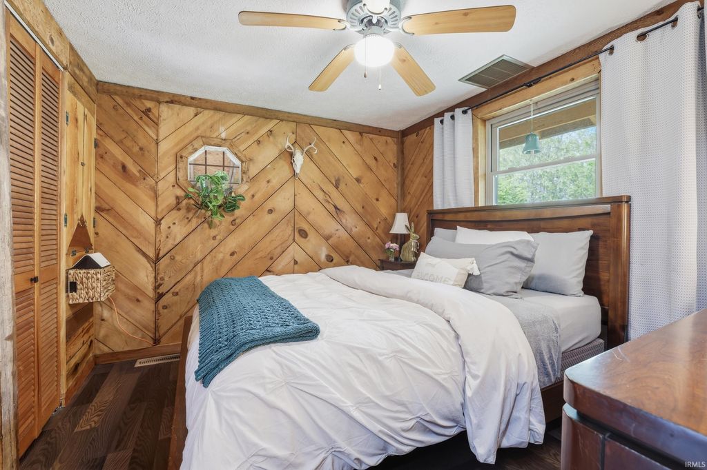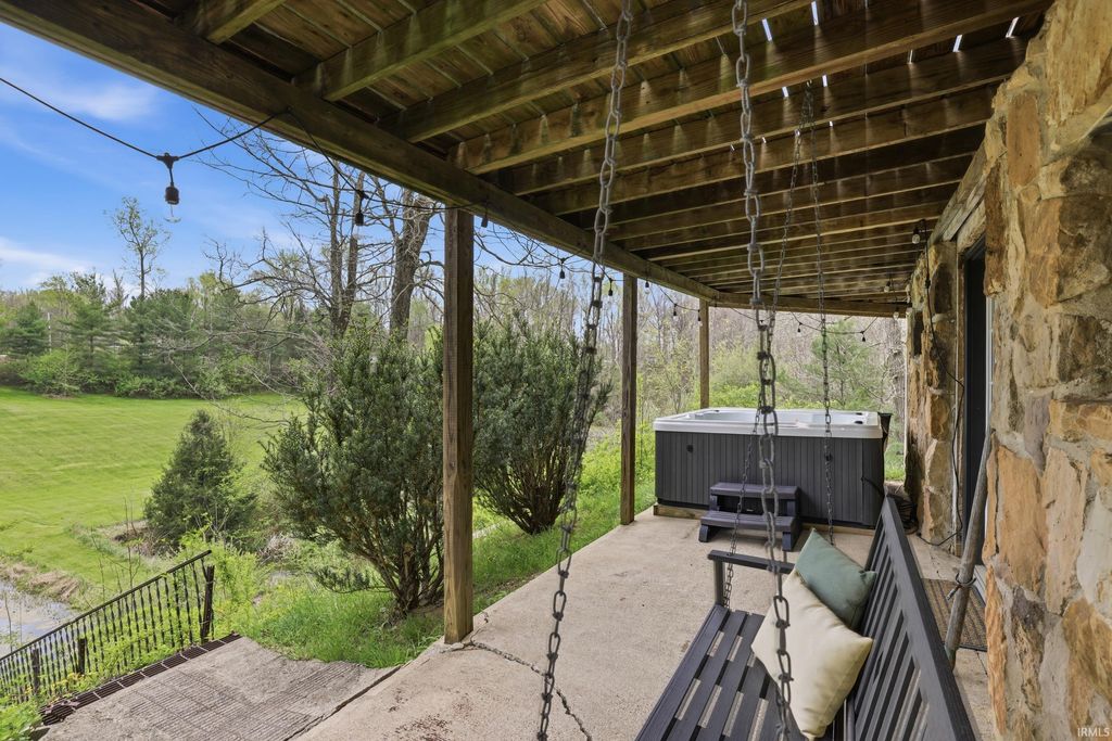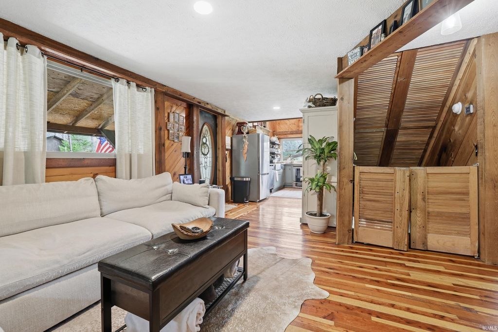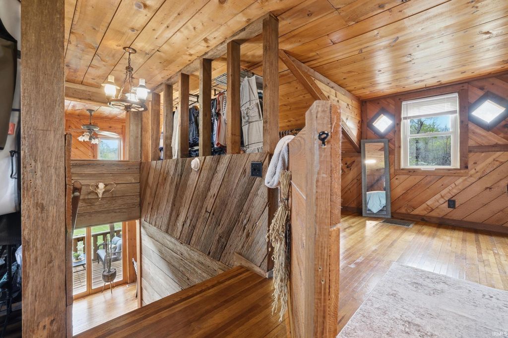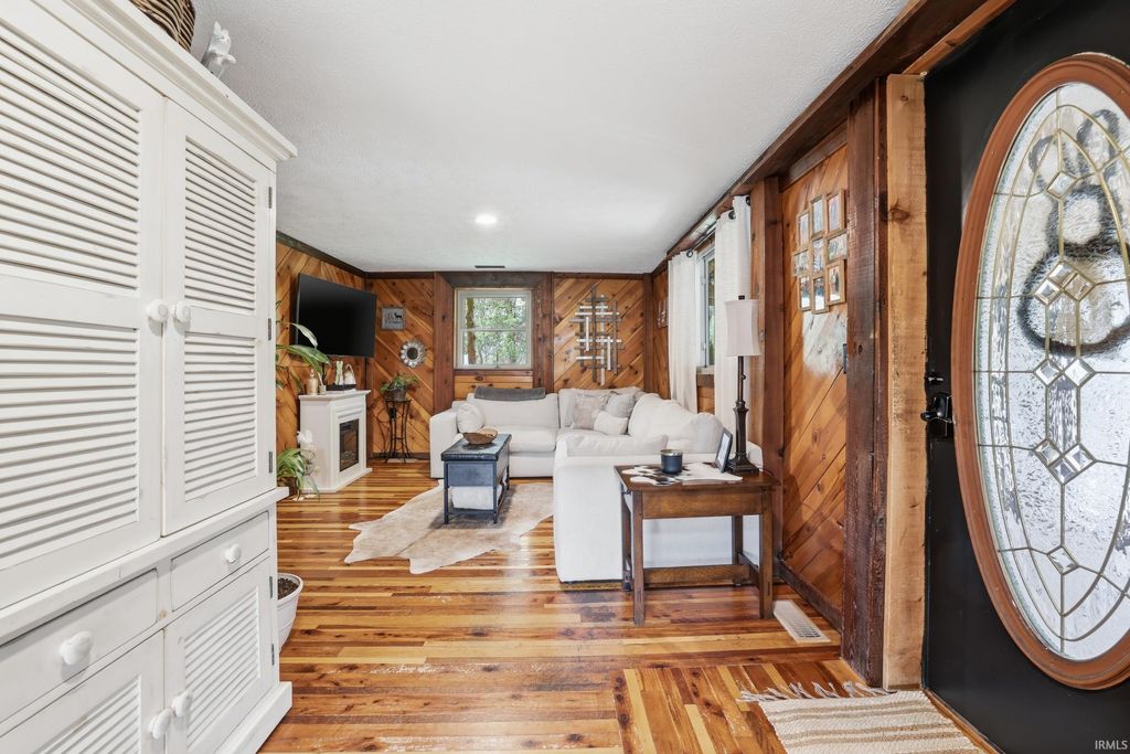 Wait until you see this custom-built cedar and Brown County stone home! Don't be misled by the two-bedroom count"”this property also features a walk-out basement that adds valuable living space and versatility! But first, let's talk about all the NEW updates! Completed in 2026: New claw-foot tub and shower unit in main-level bathroom. New in 2025: a new roof on both the cabin and garage, new windows, cedar on the eaves, and fresh exterior staining. In 2024, a 40x30 detached garage was added along with a new well pump. The home offers natural fencing of evergreen trees that line this property all 4 seasons! It sits on 10 beautiful acres and showcases incredible character with wood walls, exposed barn wood, and hardwood floors throughout. The inviting living room flows seamlessly into the kitchen, creating a warm and open gathering space. The kitchen features open shelving, stainless steel appliances, and granite countertops. Just off the kitchen, the dining area offers patio doors leading to a wraparound deck that is covered on three sides"”perfect for entertaining, relaxing, or simply enjoying the peaceful setting. Upstairs, the massive bedroom offers endless possibilities. It can serve as a luxurious primary suite, creative studio, office, or additional living area. The lower level includes another room, a full bathroom, and a laundry/mechanical room"”adding even more flexibility to the home's layout. Step outside and experience the natural beauty of this property. The woods, ponds, and meadow attract an abundance of wildlife, including deer, fox, numerous bird species, and even Blue Heron. Check out the 12x6 shed/barn in the fenced area. Ever considered a mini farm? This could be it! The views from this home are truly limitless. Multiple windows overlook two stocked ponds and a park-like meadow, creating a setting that feels like your own private retreat. A dream location for nature lovers, hikers and outdoor enthusiasts! Speaking of, this could also be considered for an AirBnb per Owen County Planning and Zoning! This home is conveniently located too. It is only 10 minutes from the west side of Bloomington and I-69 and also offers high-speed internet! To top it all off, the property is surrounded by 150 acres of Nature Conservancy land, providing unmatched privacy, protected views, and extraordinary natural beauty. It truly is a must see!